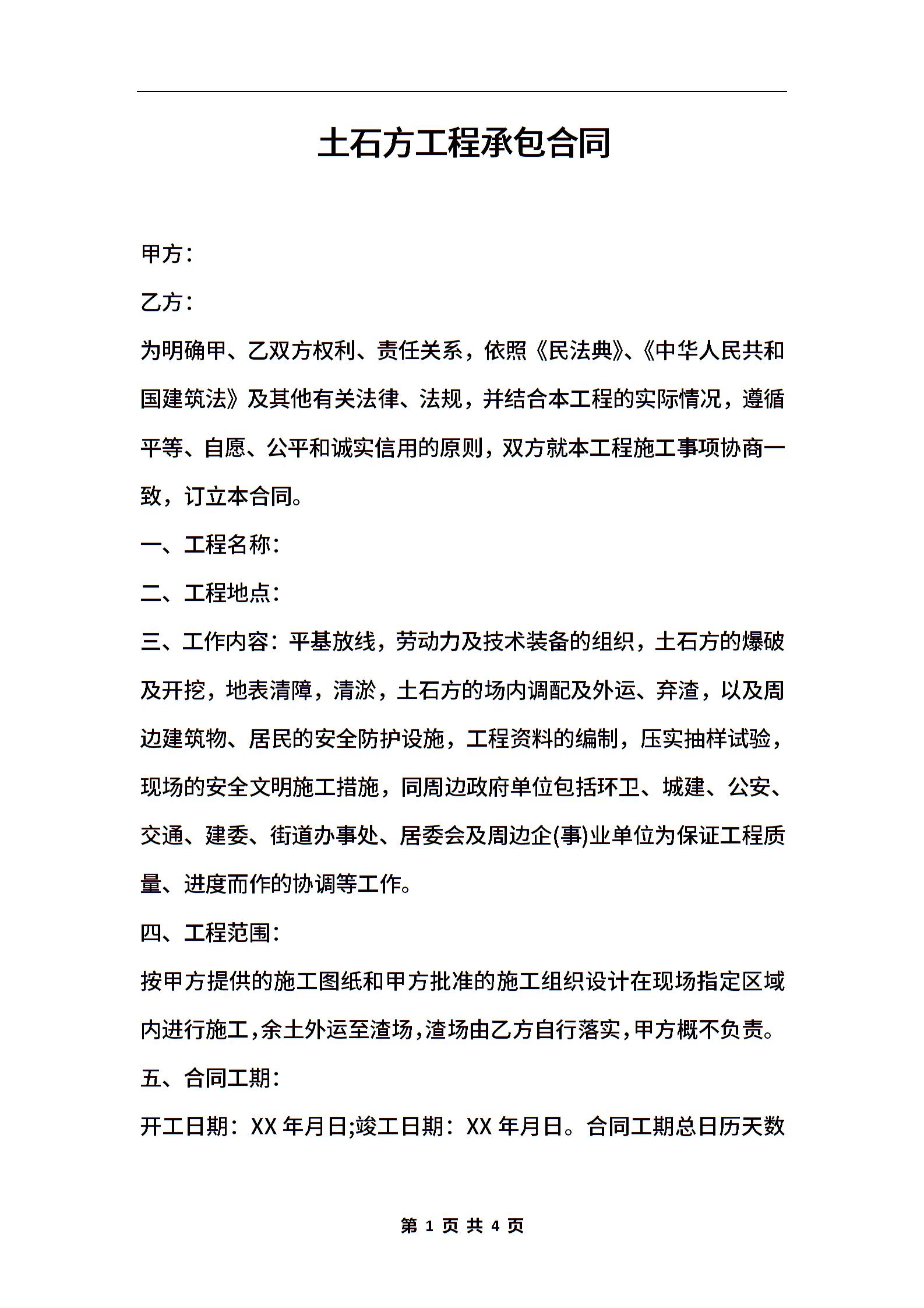 土石方工程承包合同