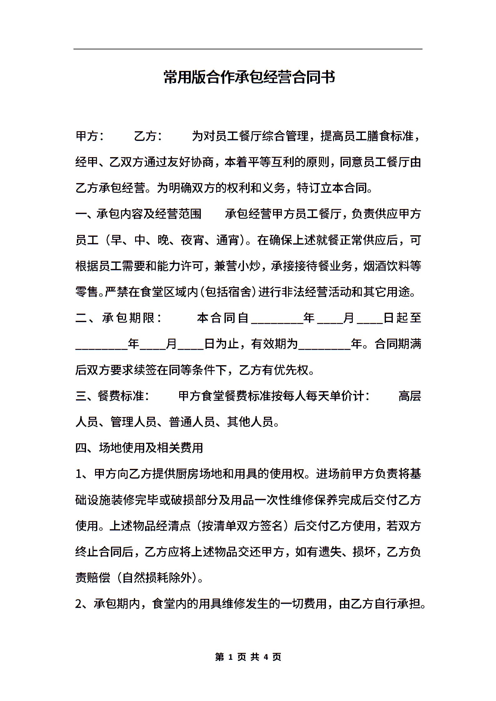 常用版合作承包经营合同书