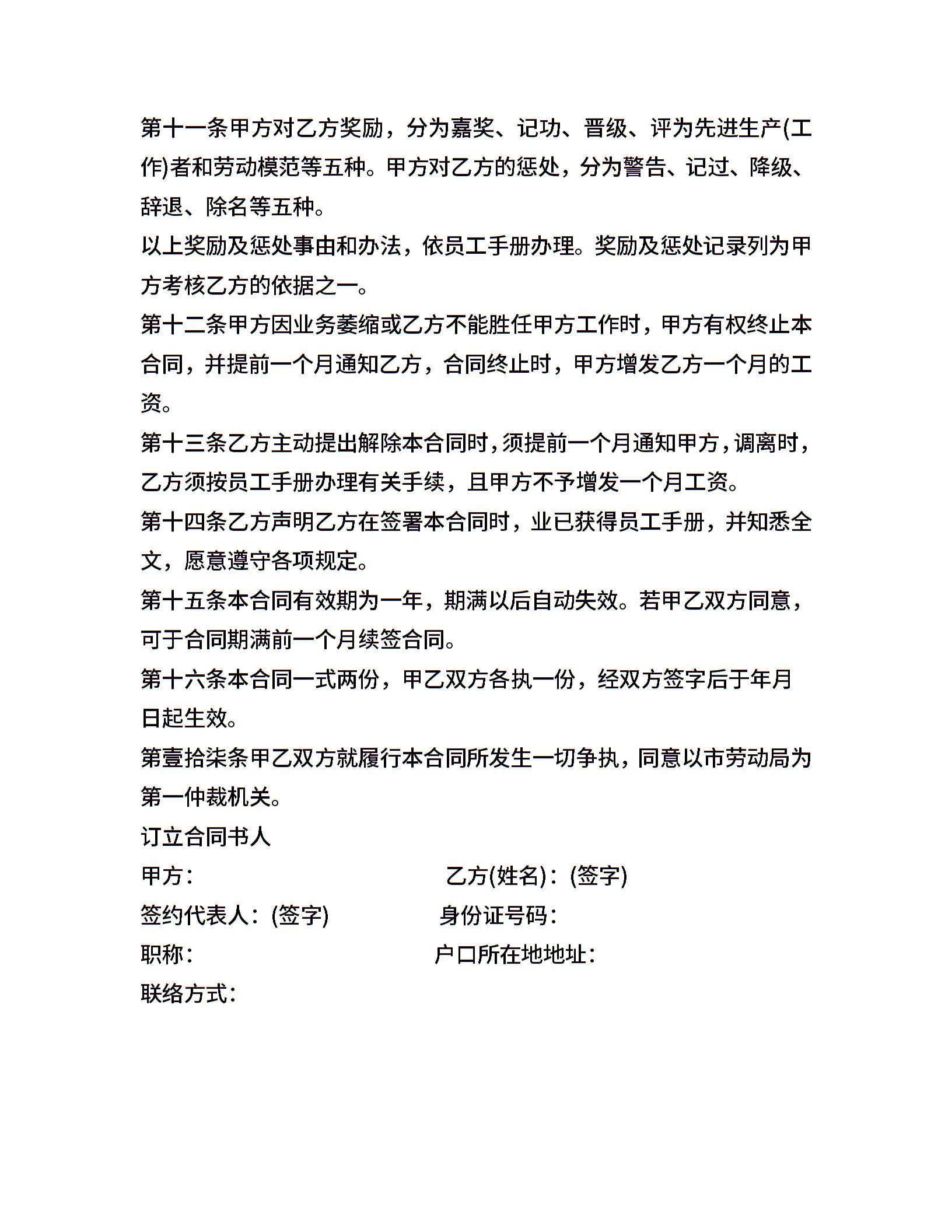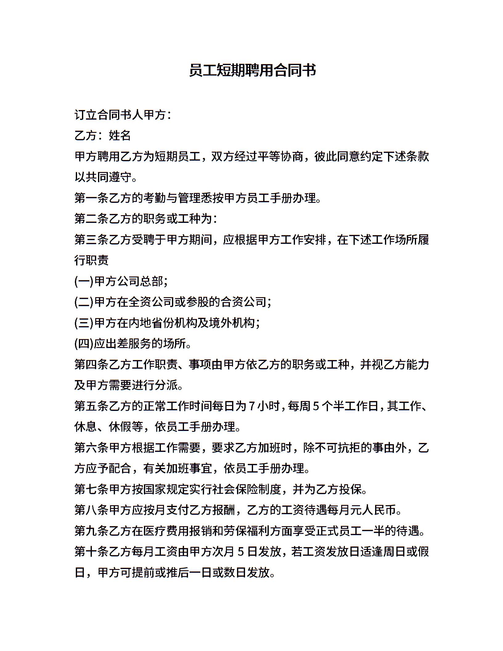 员工短期聘用合同书