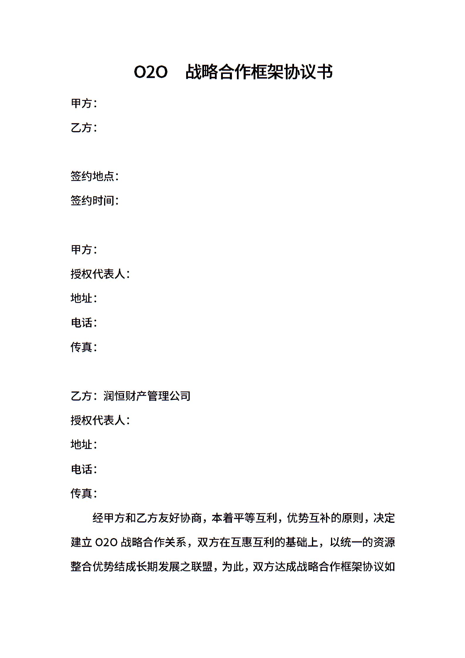 O2O战略合作协议书范本(1)