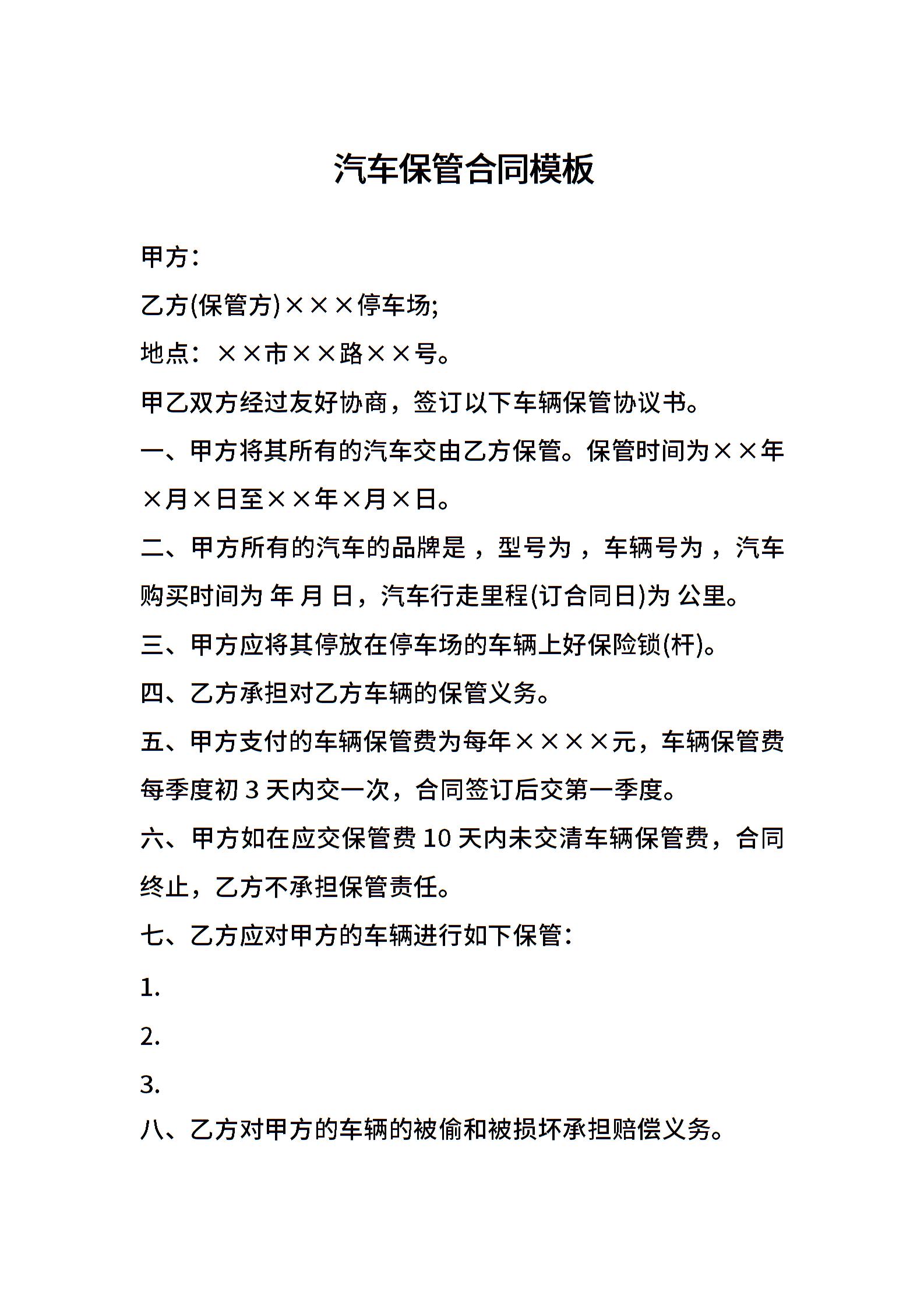 当前位置:量子办公 > 合同模板 > 保管合同 >