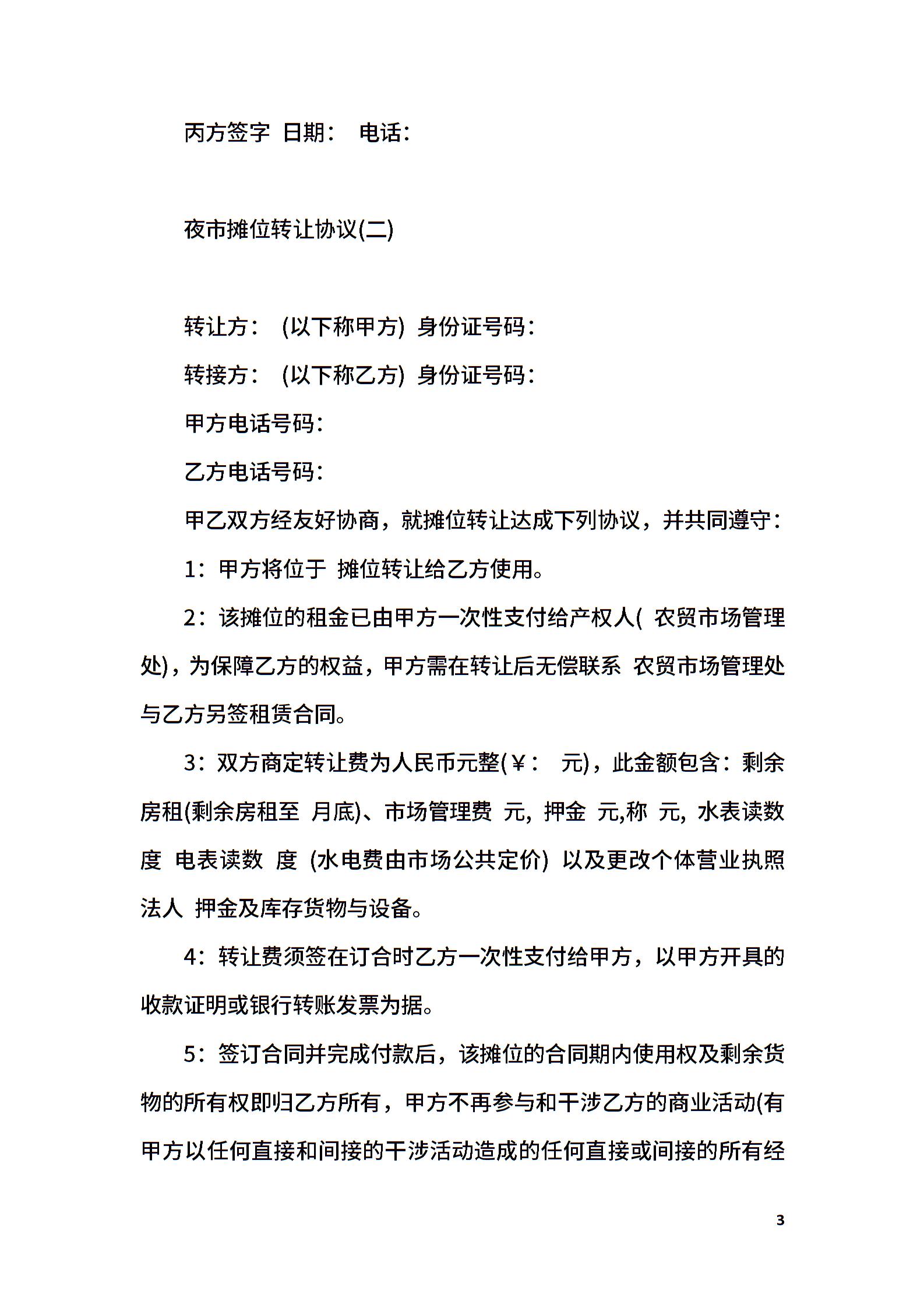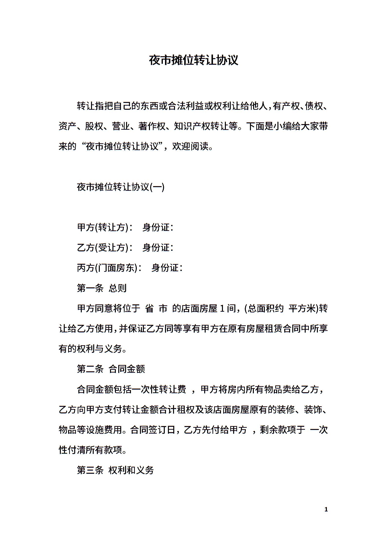 夜市摊位转让协议