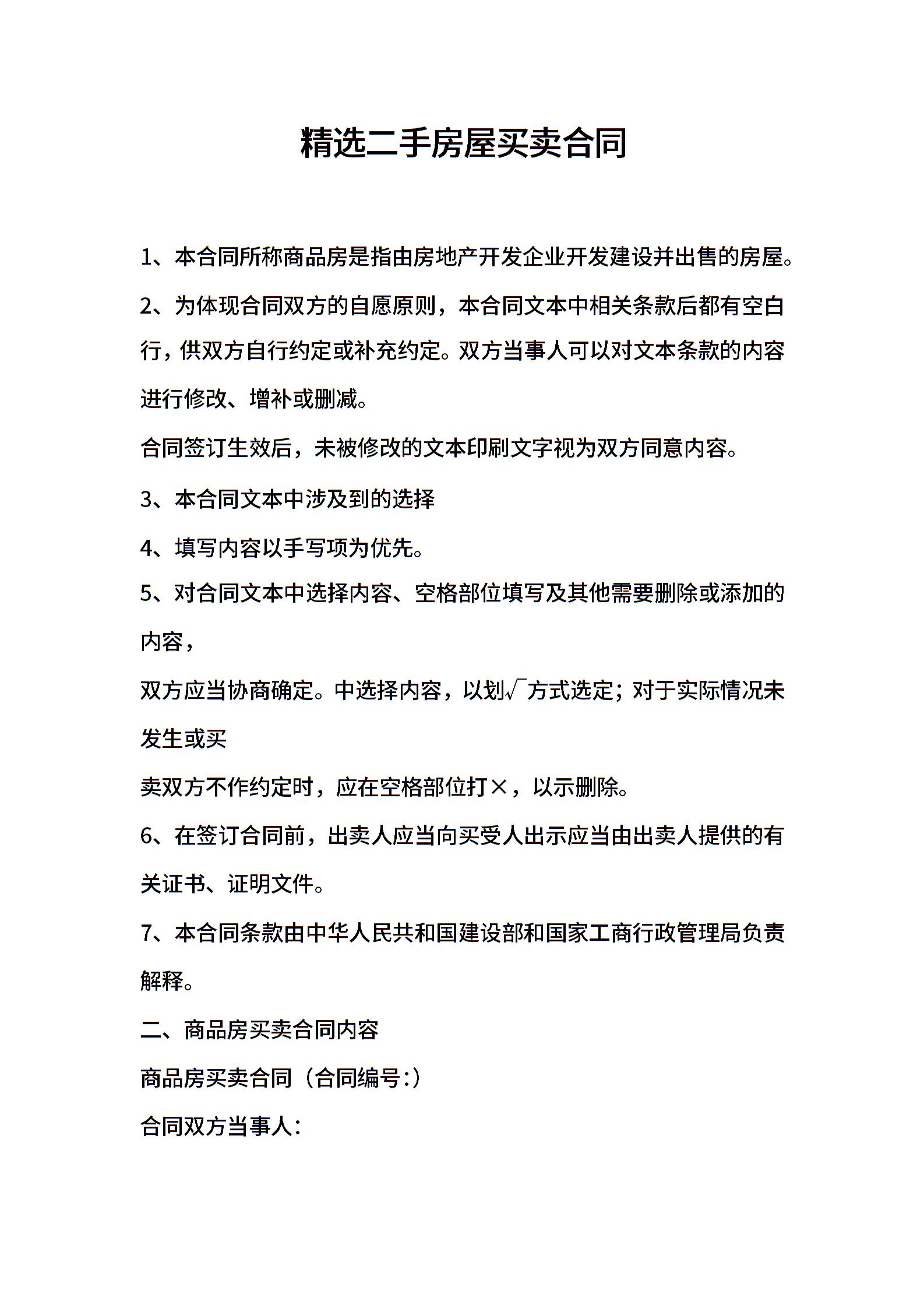 精选二手房屋买卖合同