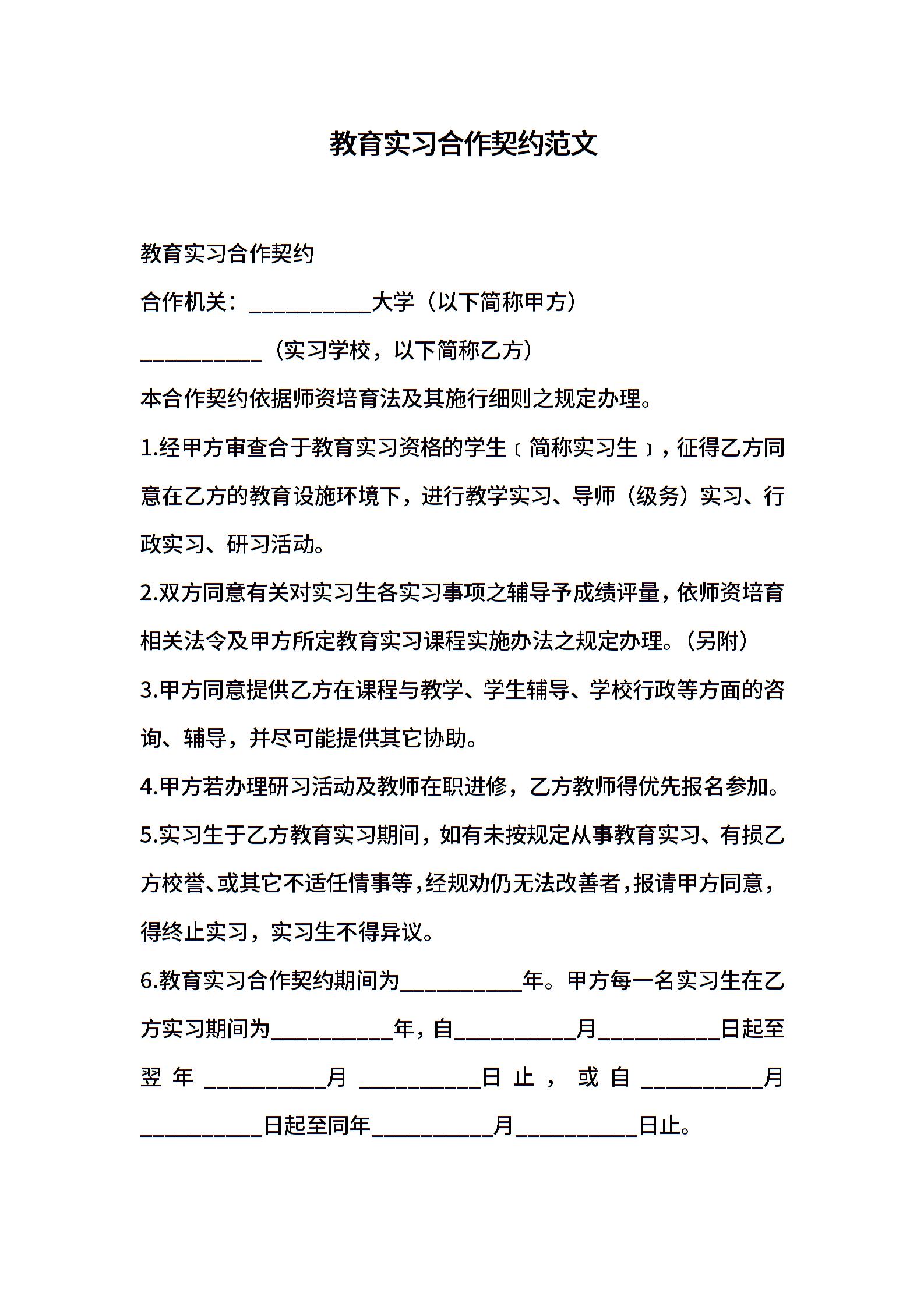 教育实习合作契约范文