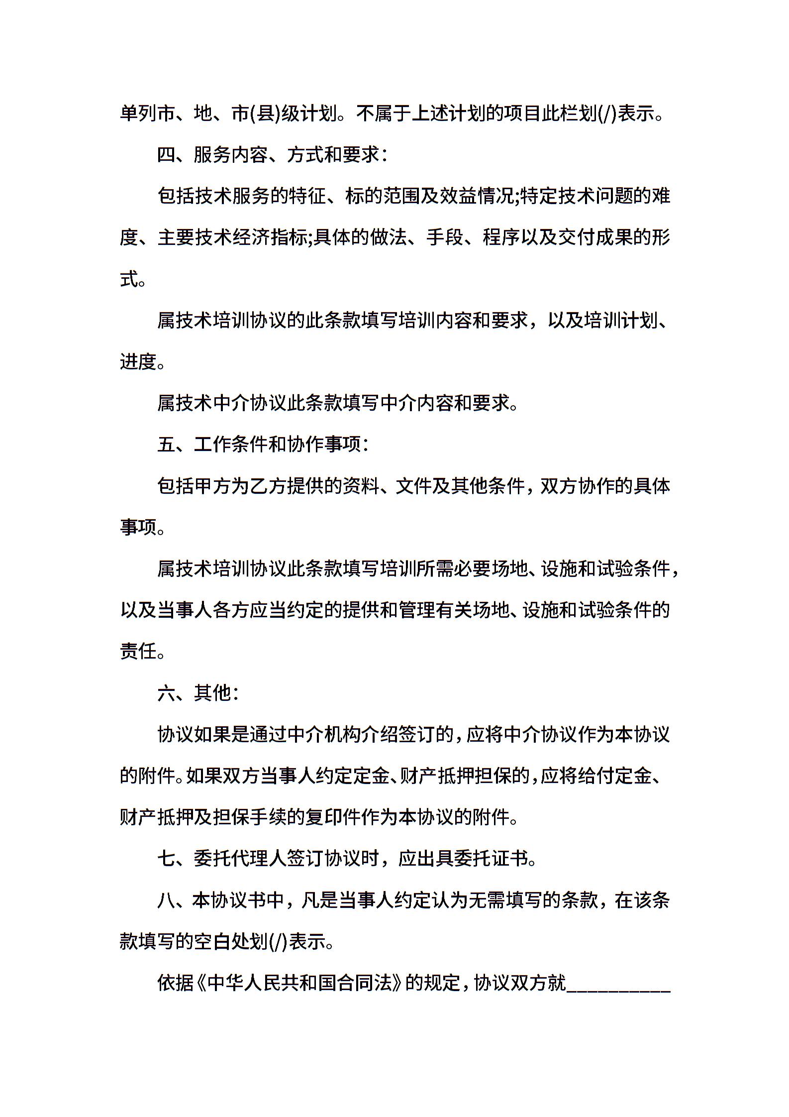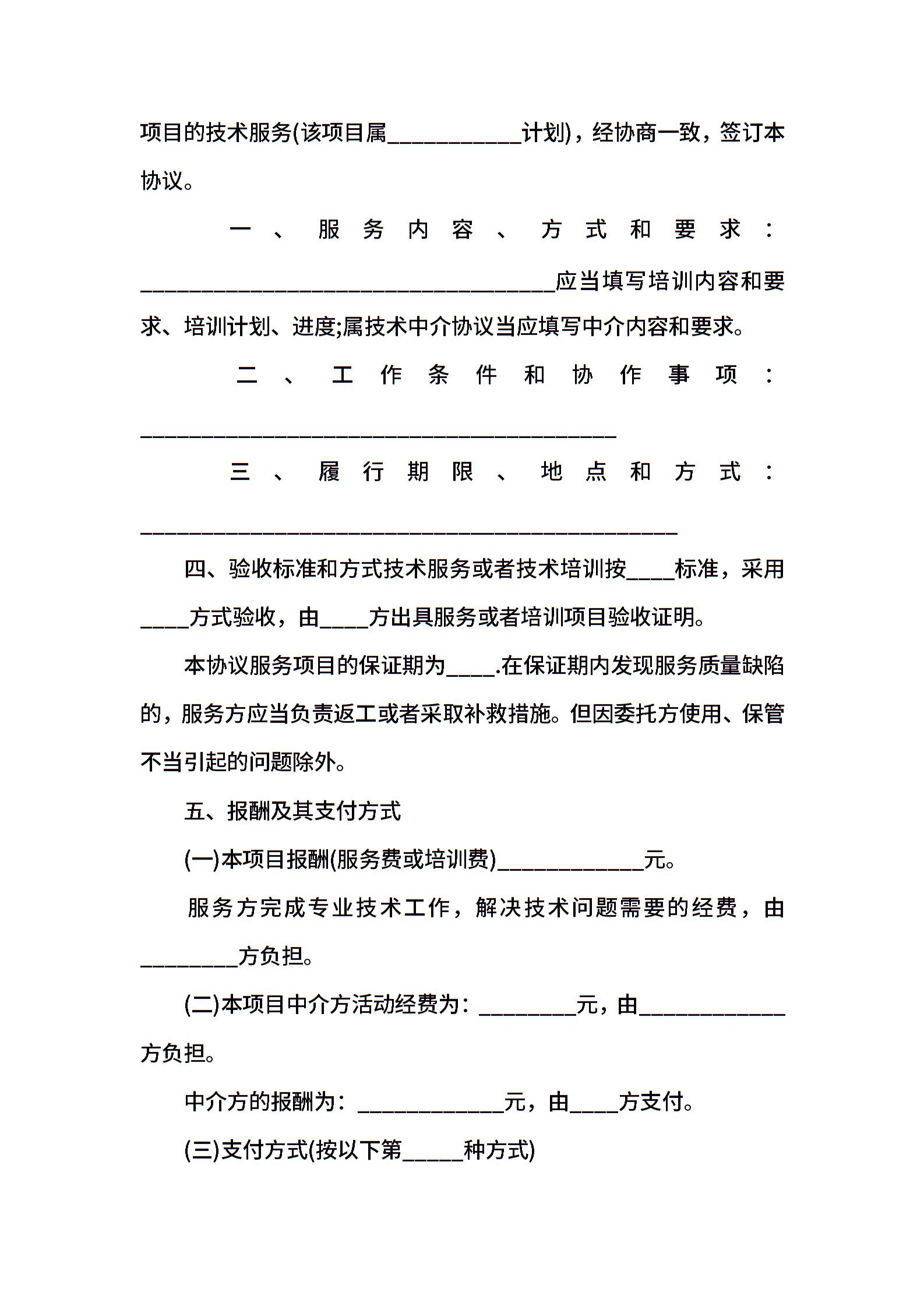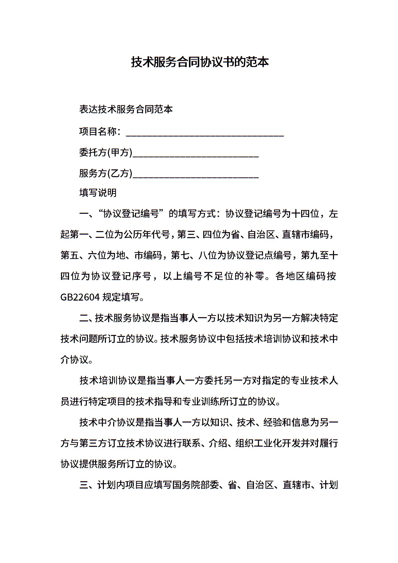 技术服务合同协议书的范本