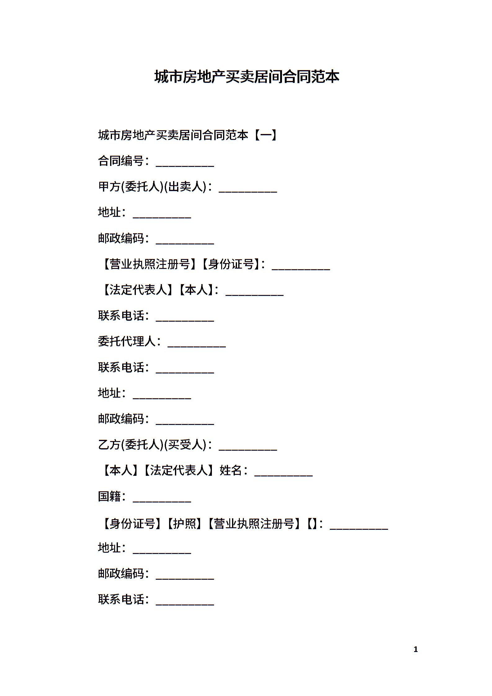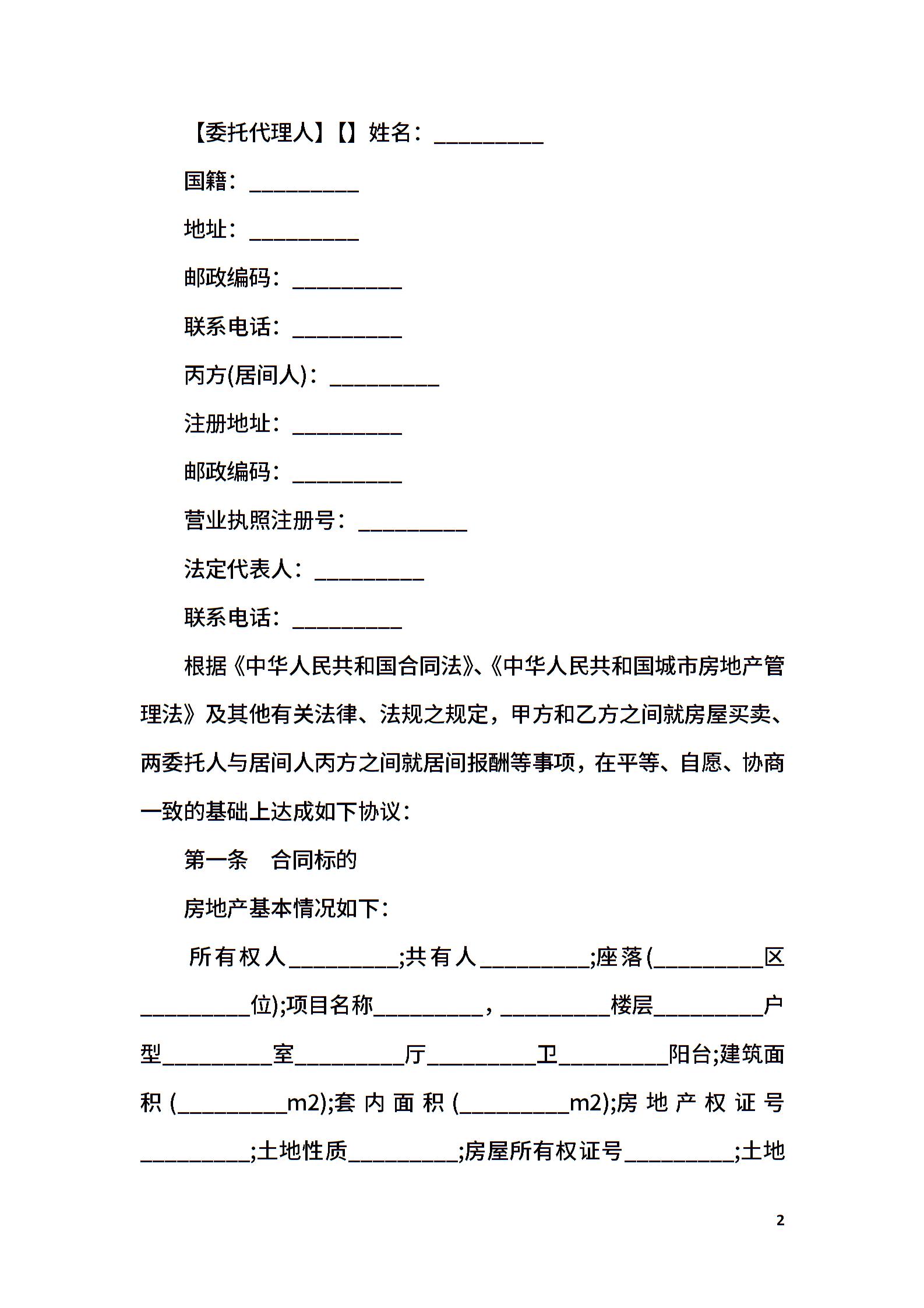 城市房地产买卖居间合同范本