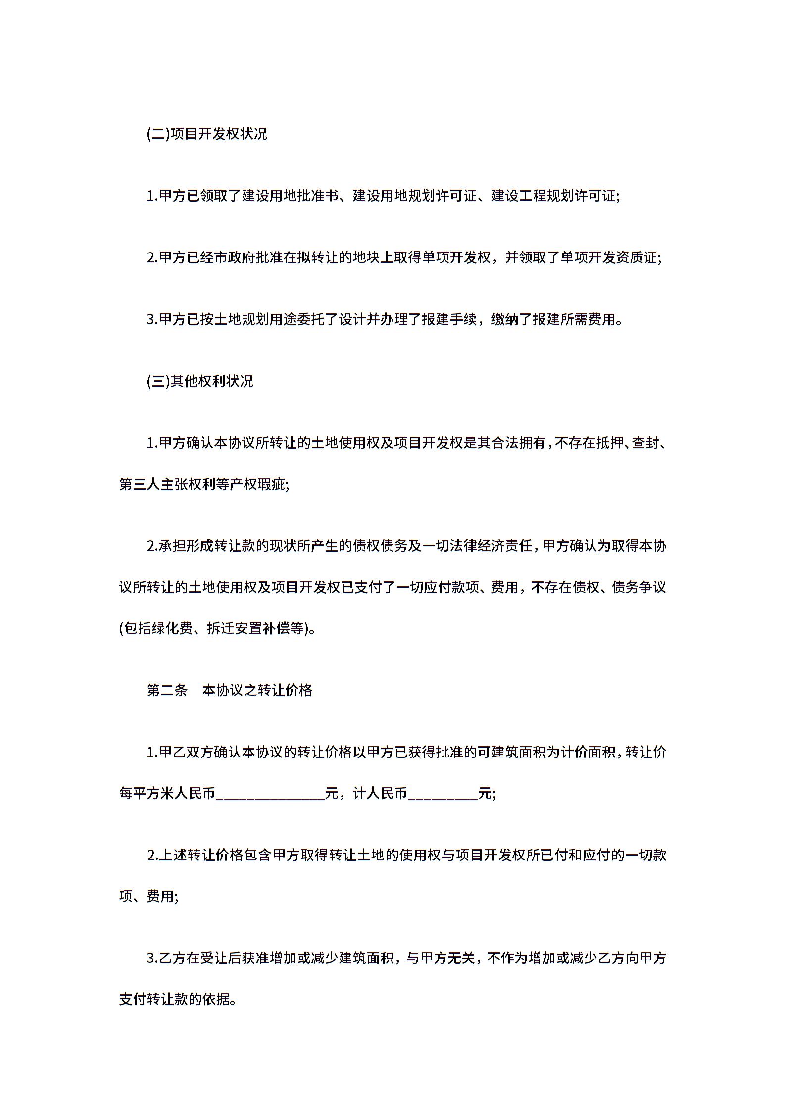 房地产项目转让合同范本