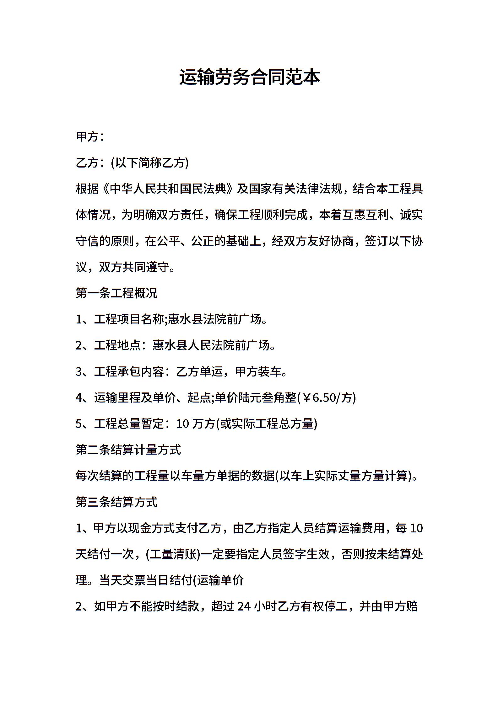 2021年运输劳务合同范本