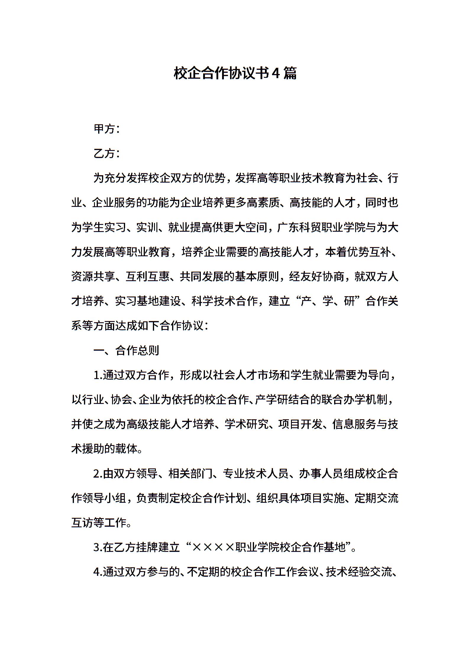 校企合作协议书4篇