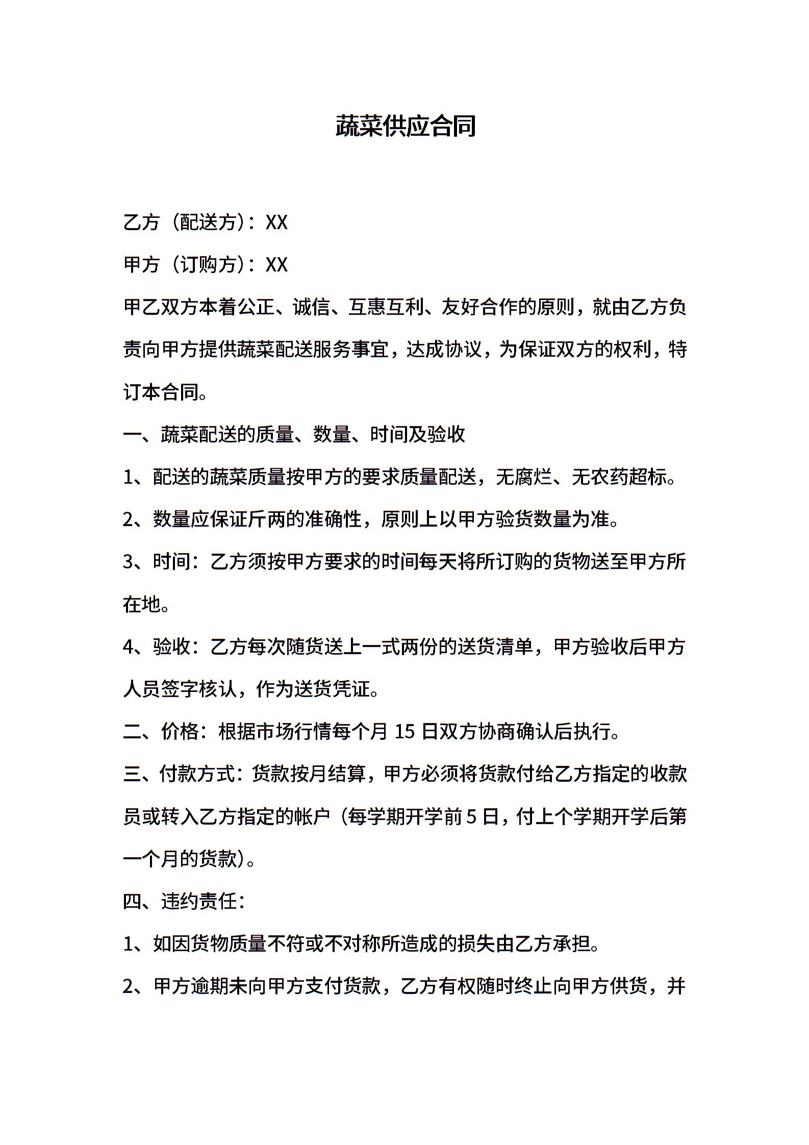 蔬菜供应合同