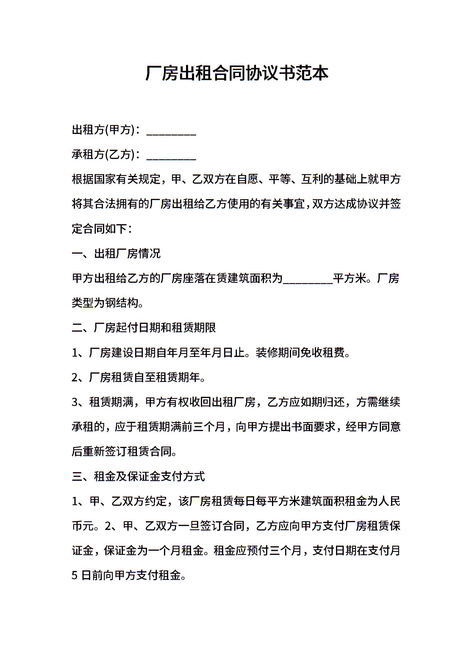 2021年厂房出租合同协议书范本