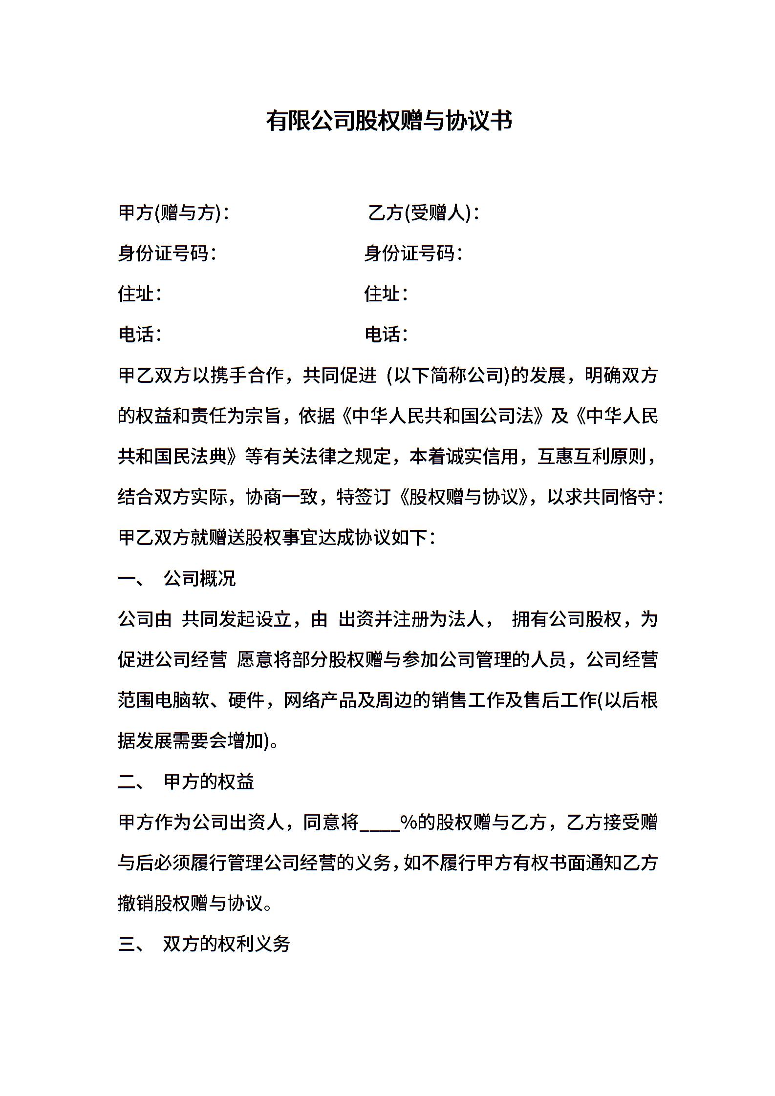 有限公司股权赠与协议书