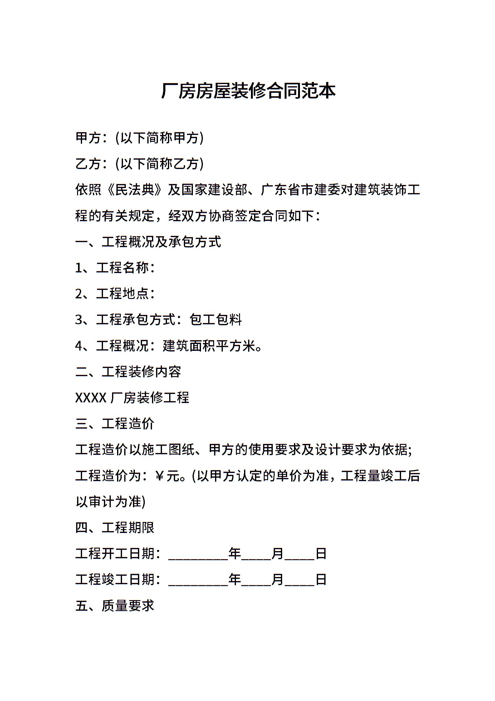 厂房房屋装修合同范本
