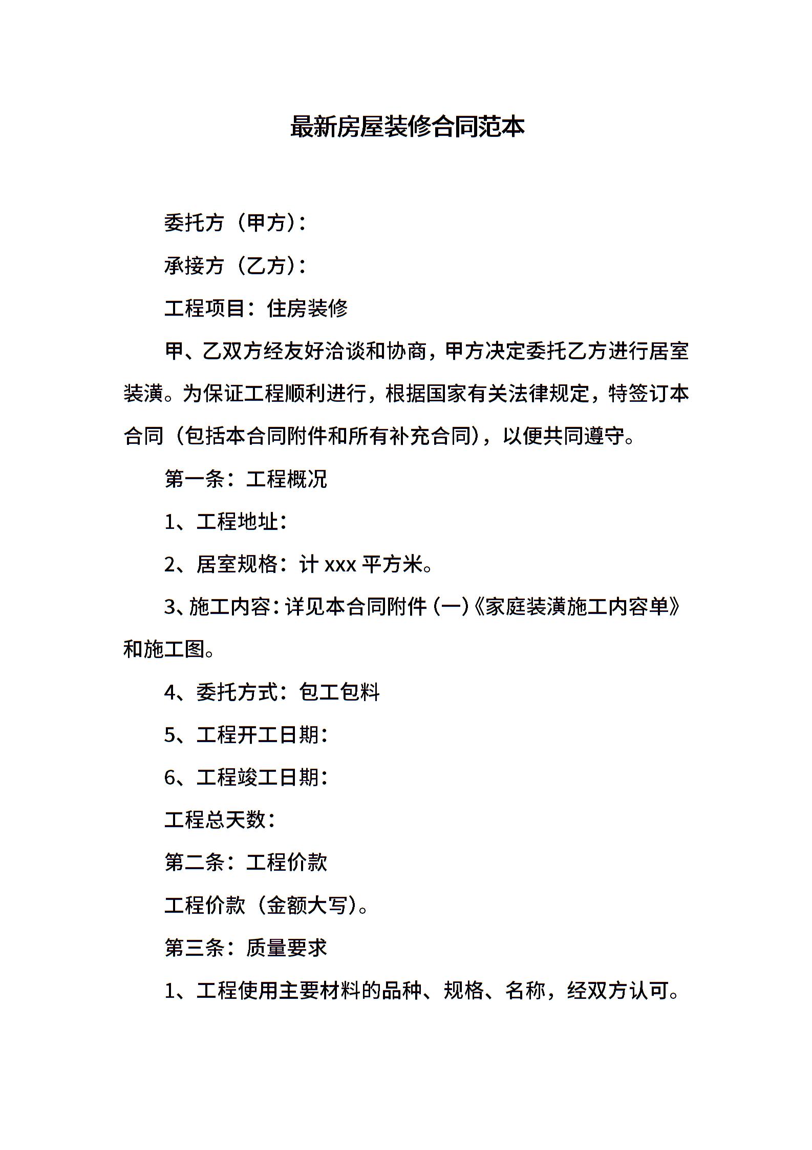 最新房屋装修合同范本