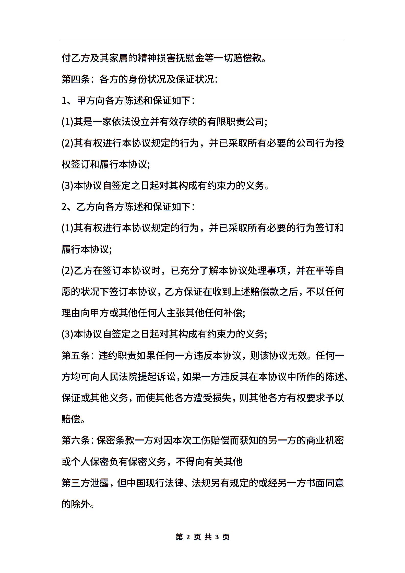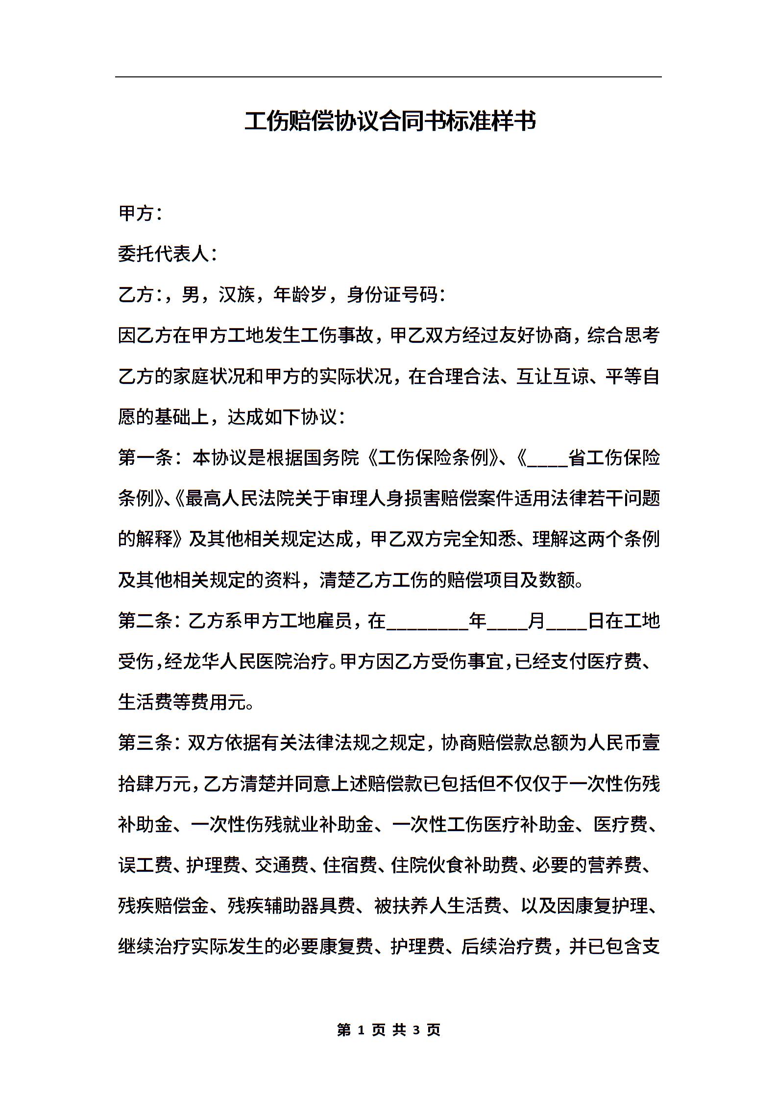 工伤赔偿协议合同书标准样书