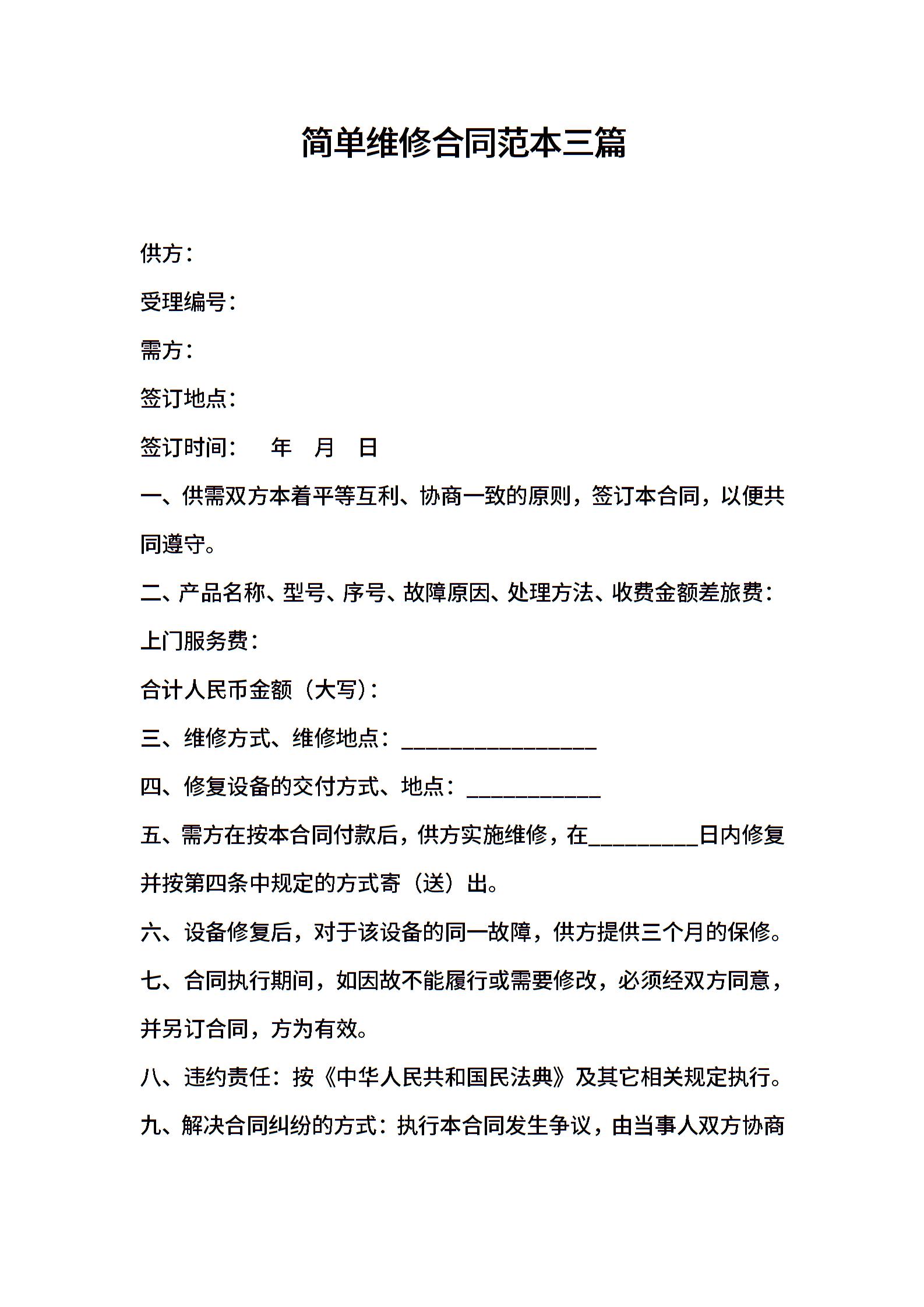 当前位置:量子办公 > 合同模板 > 维修合同 >