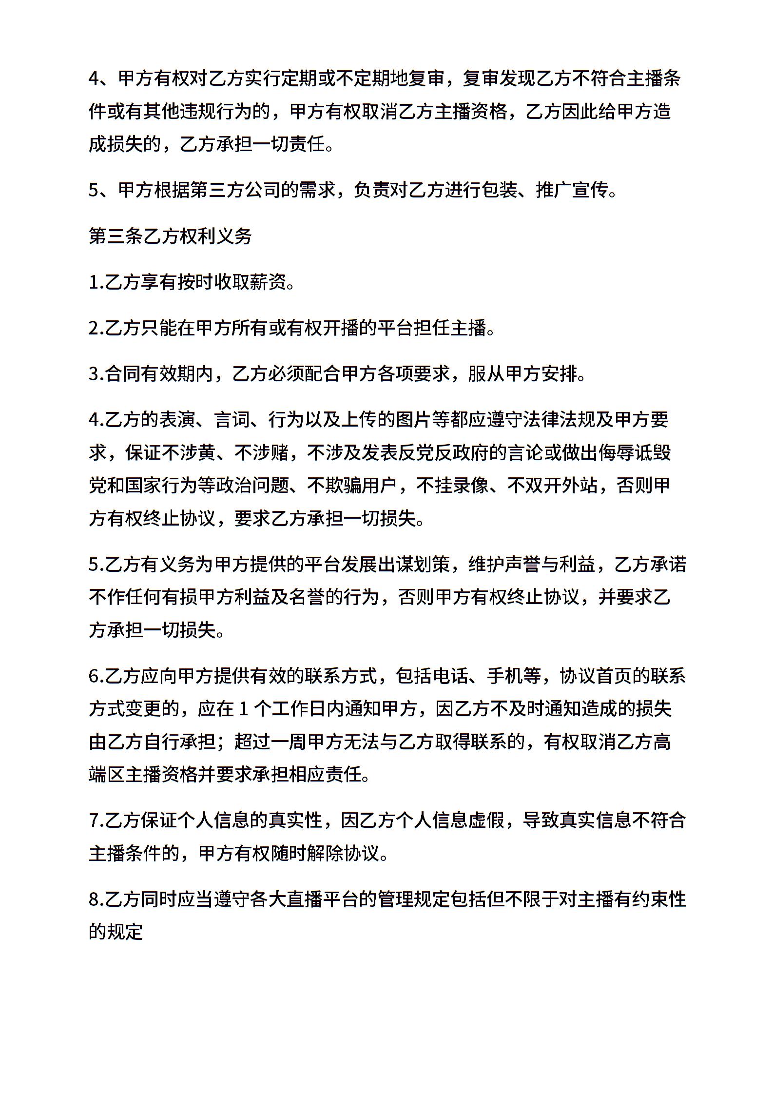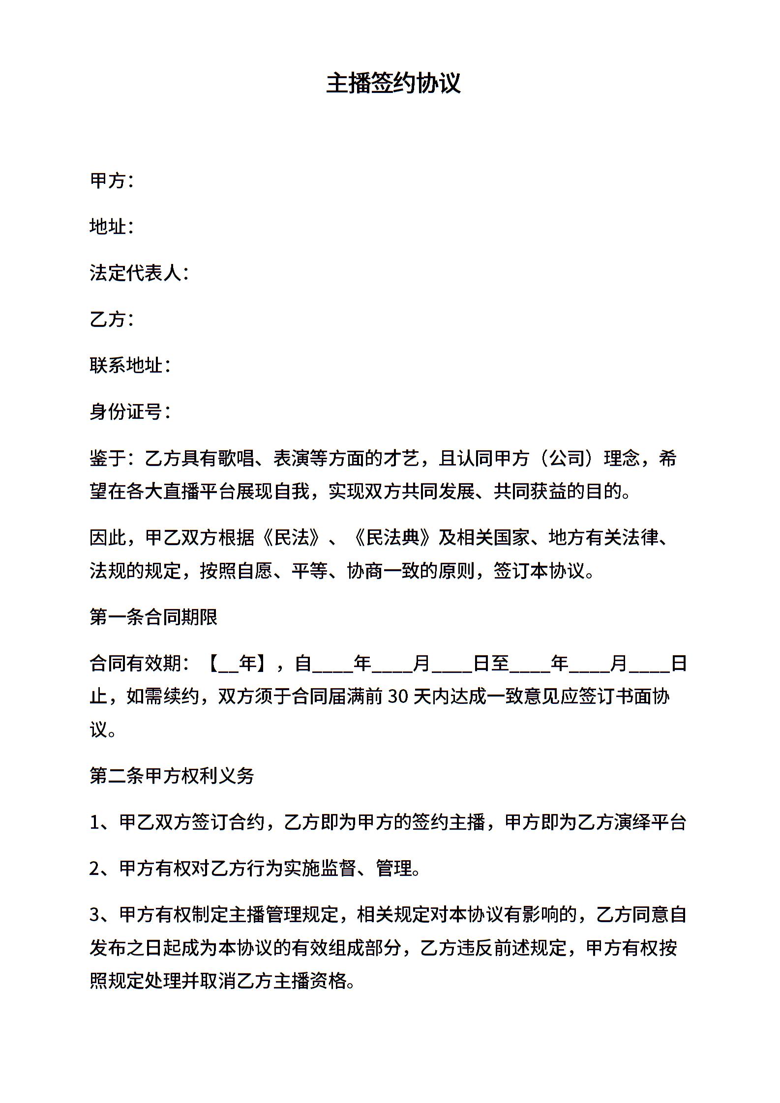主播招募签约协议