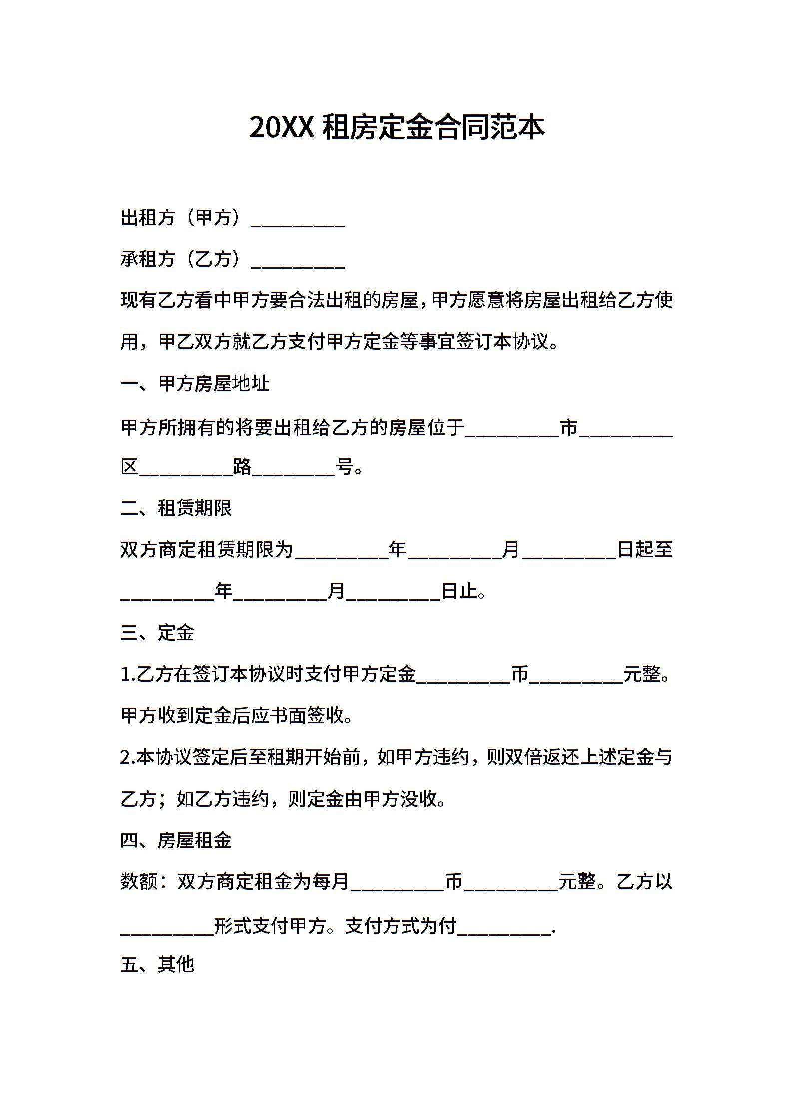 2021租房定金合同范本