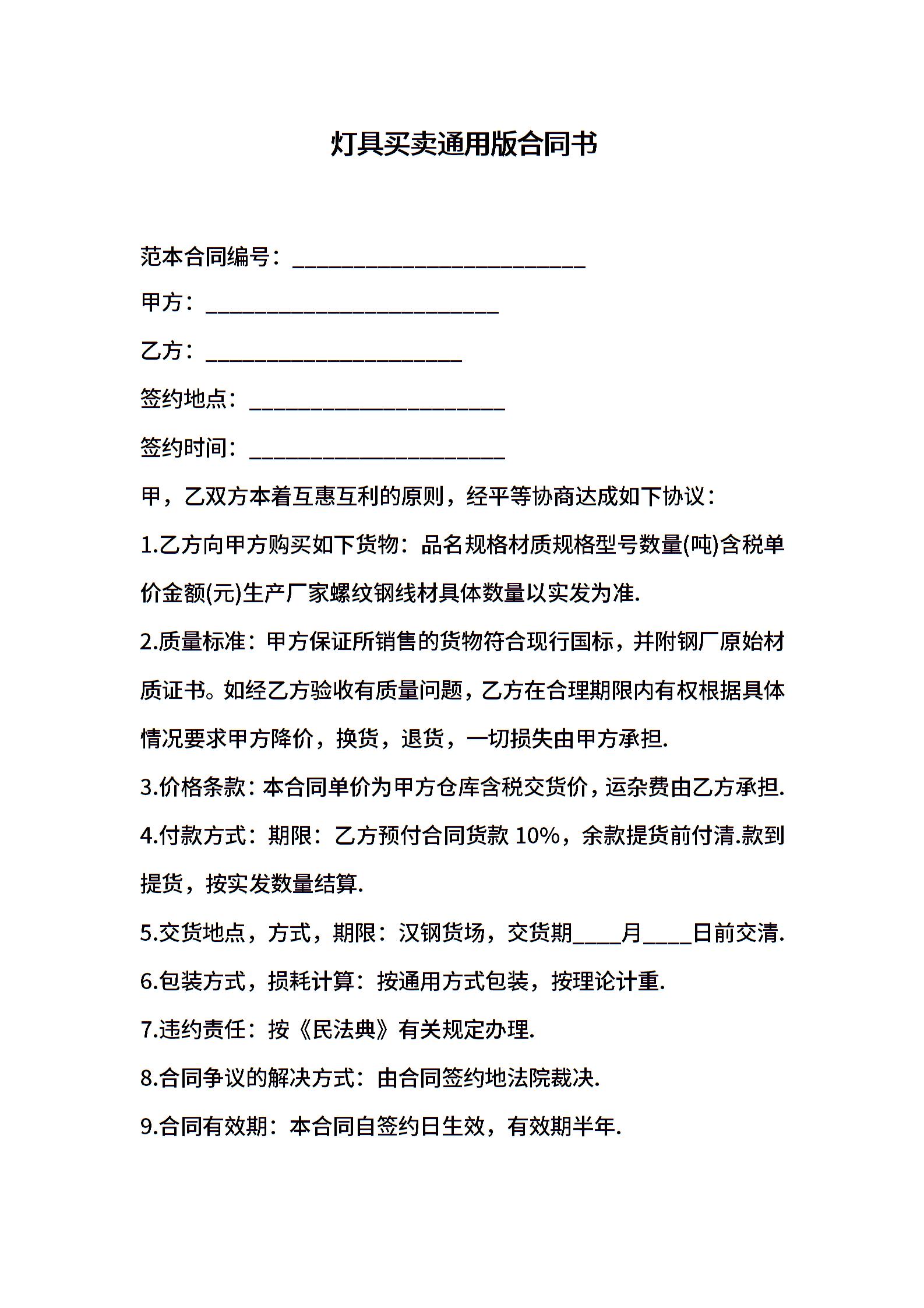 灯具买卖通用版合同书