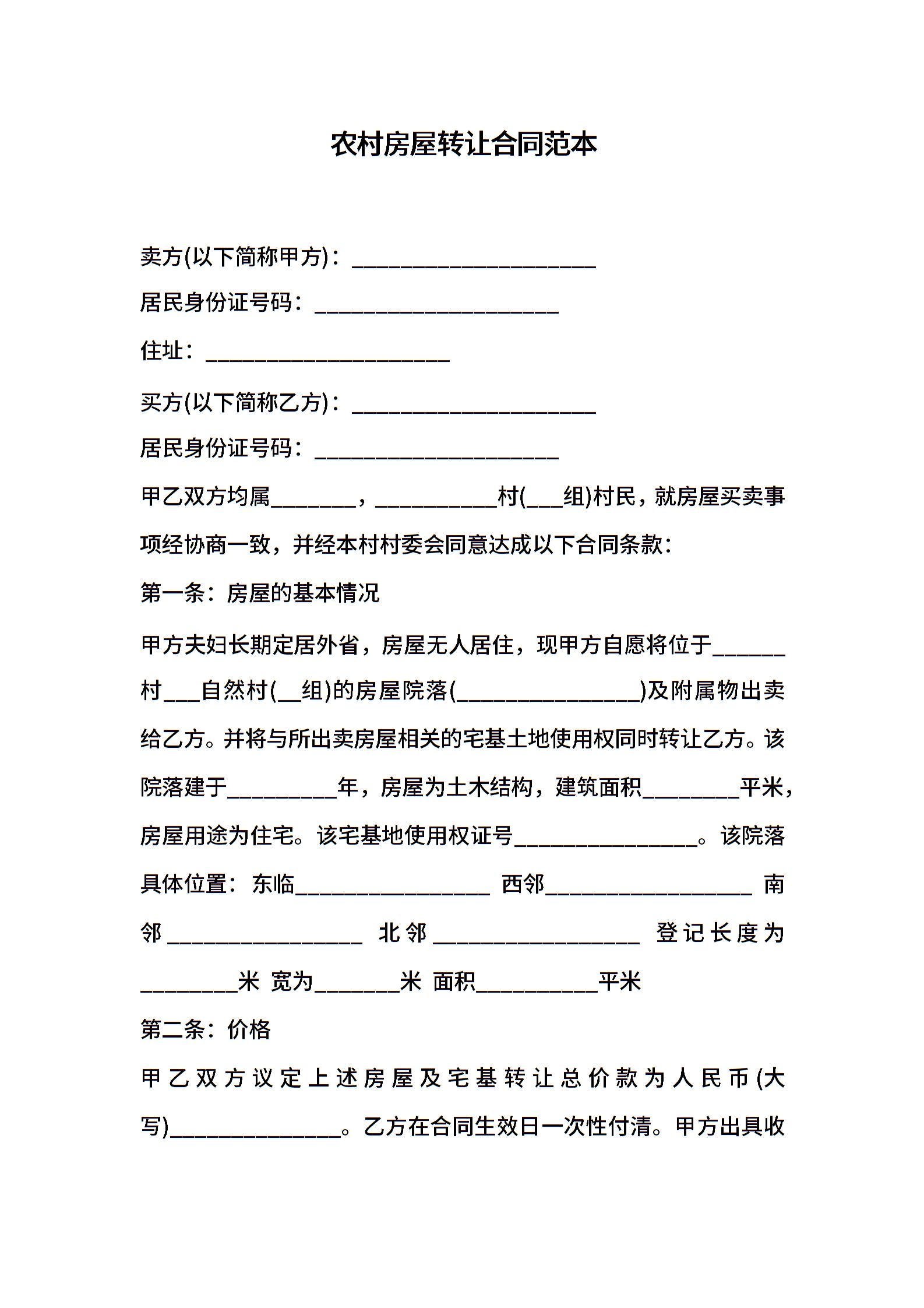 农村房屋转让合同范本