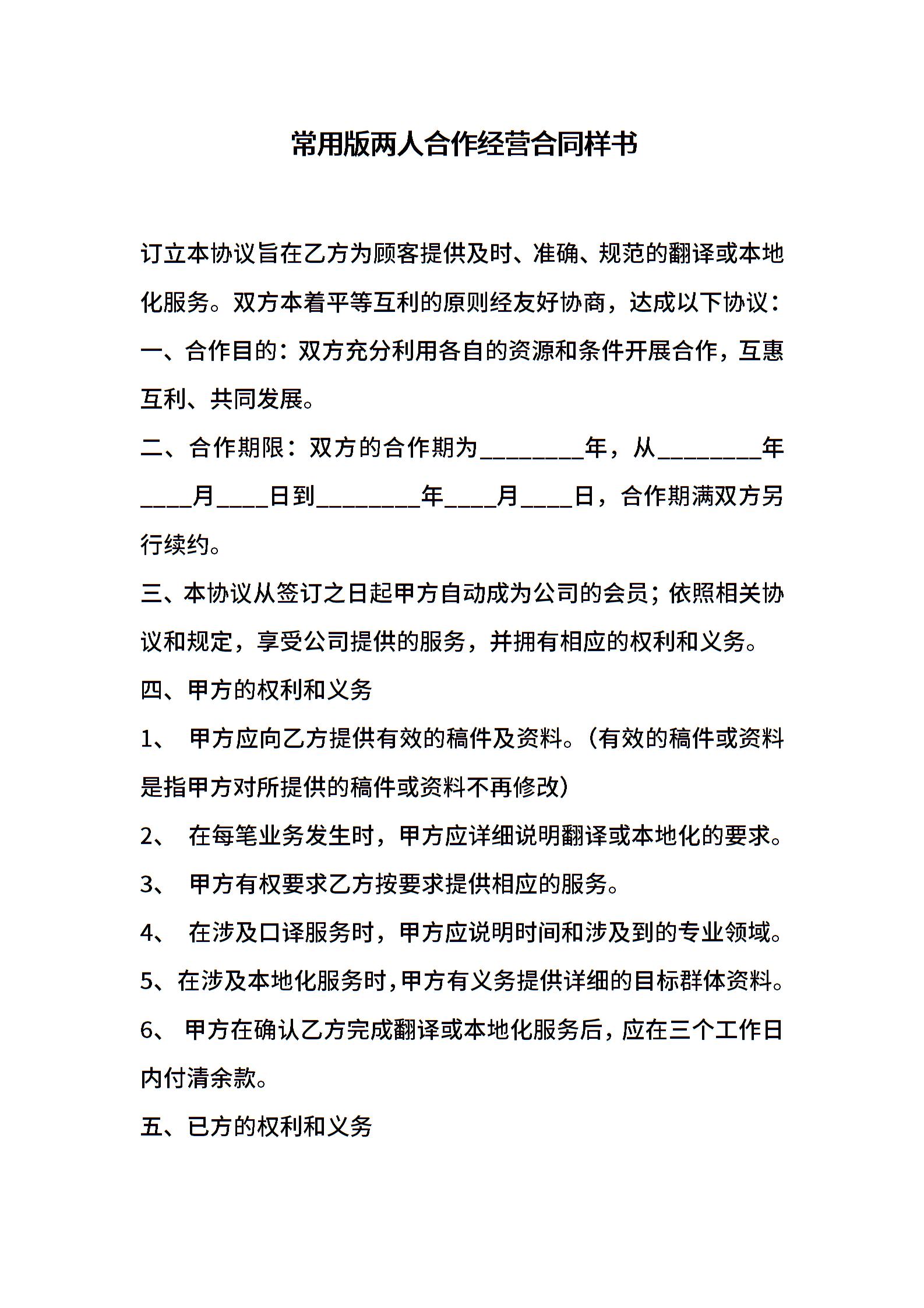 当前位置:量子办公 > 合同模板 > 合作合同 >