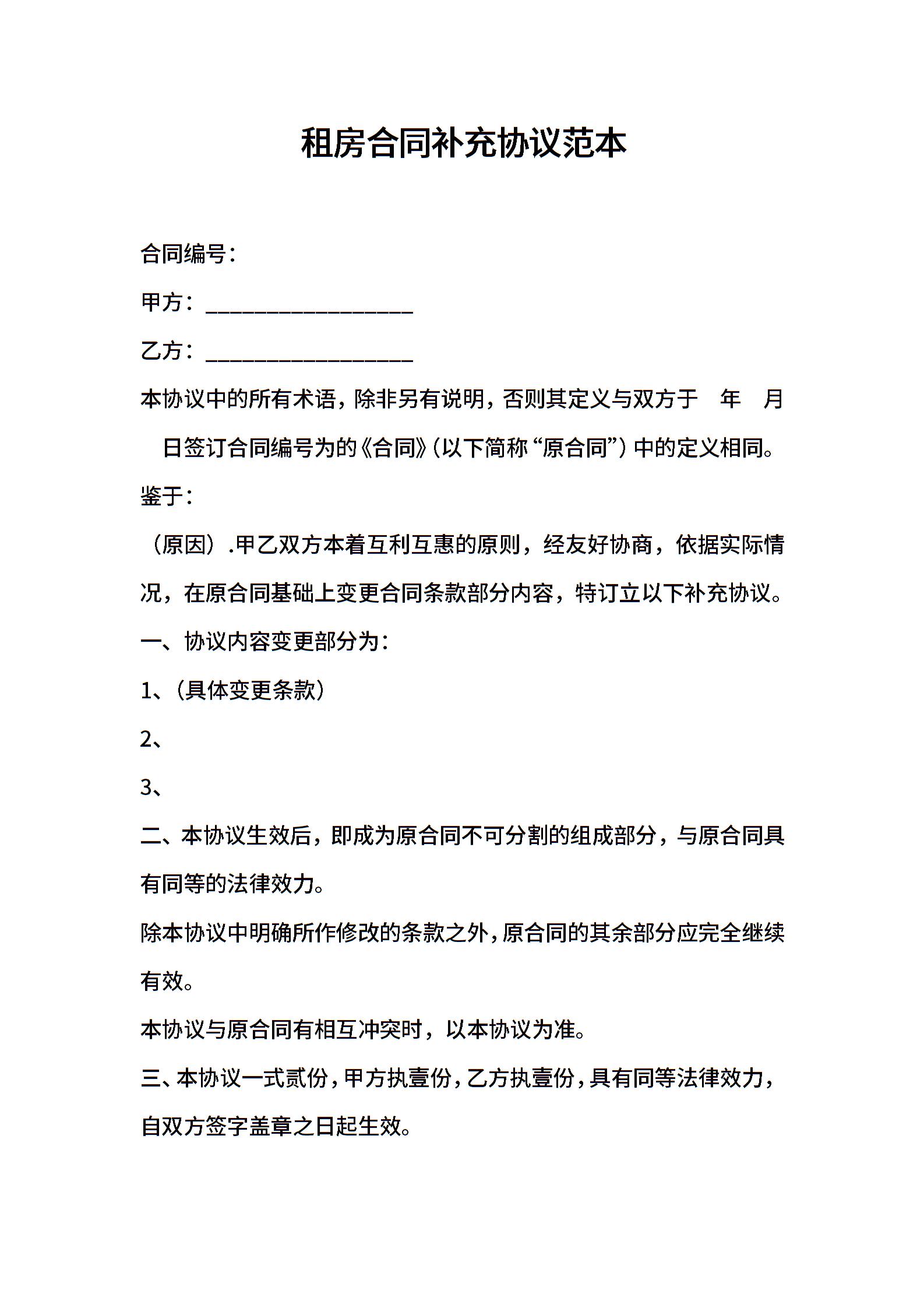 租房合同补充协议范本