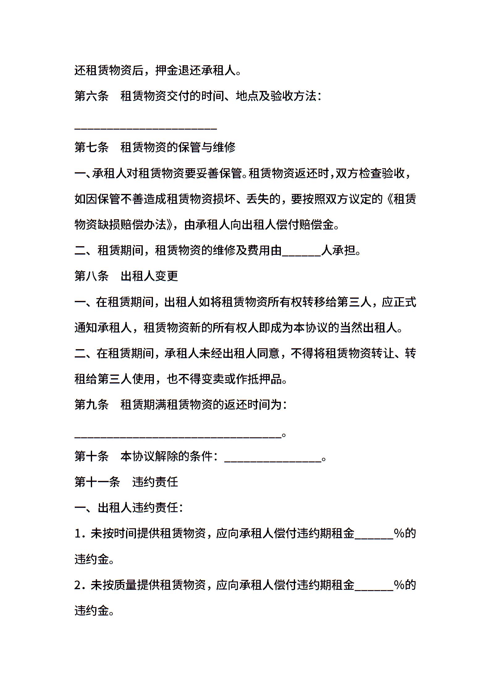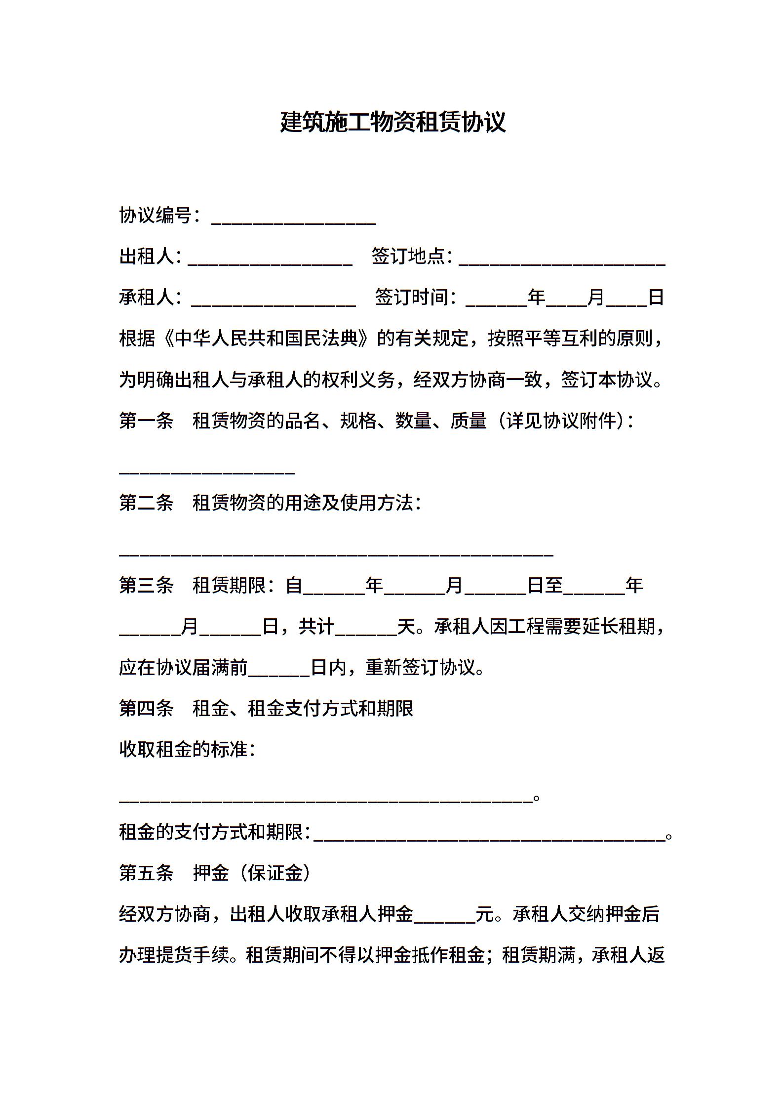 建筑施工物资租赁协议