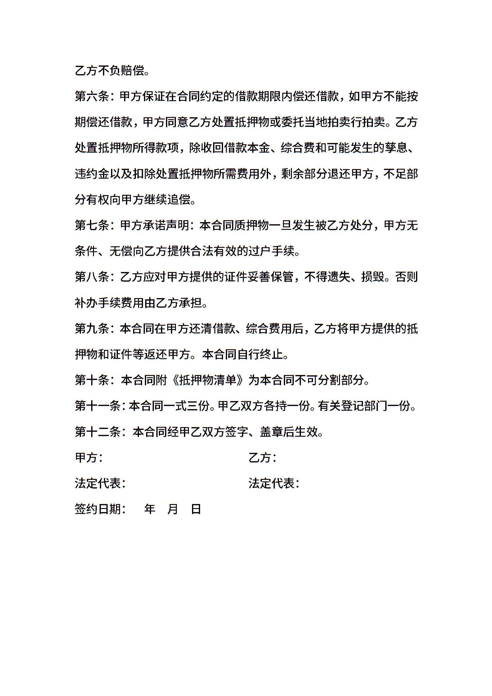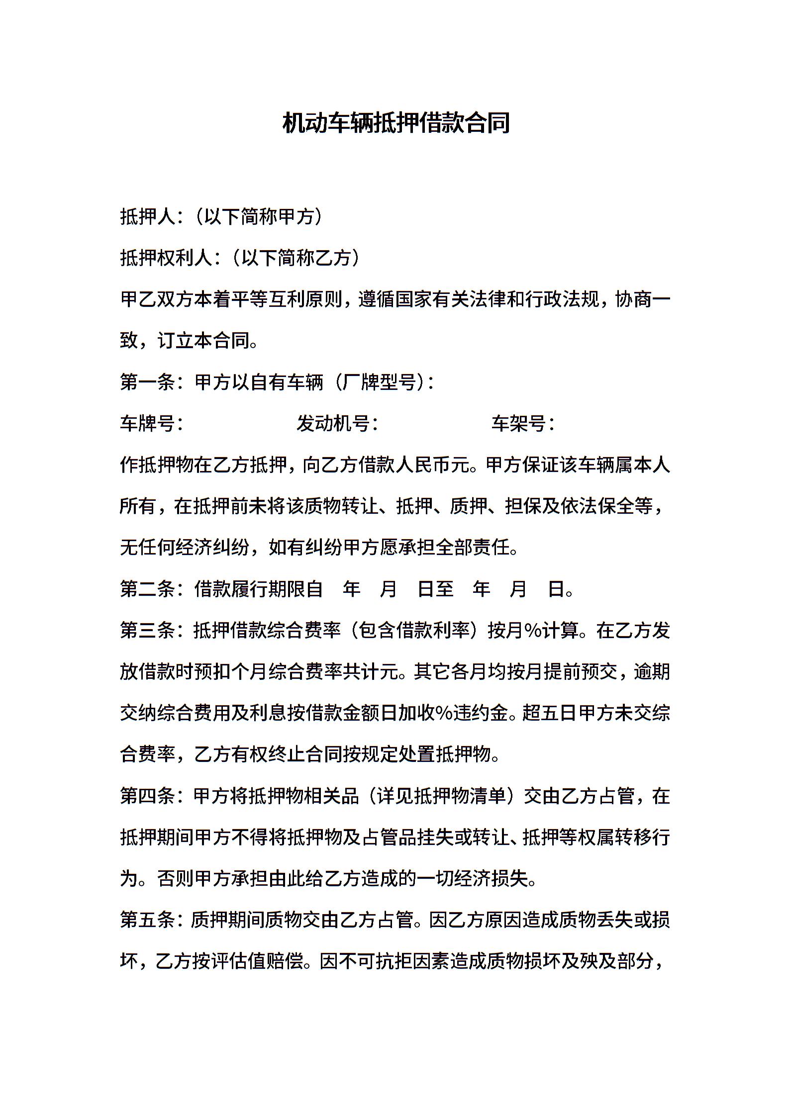 机动车辆质押借款合同
