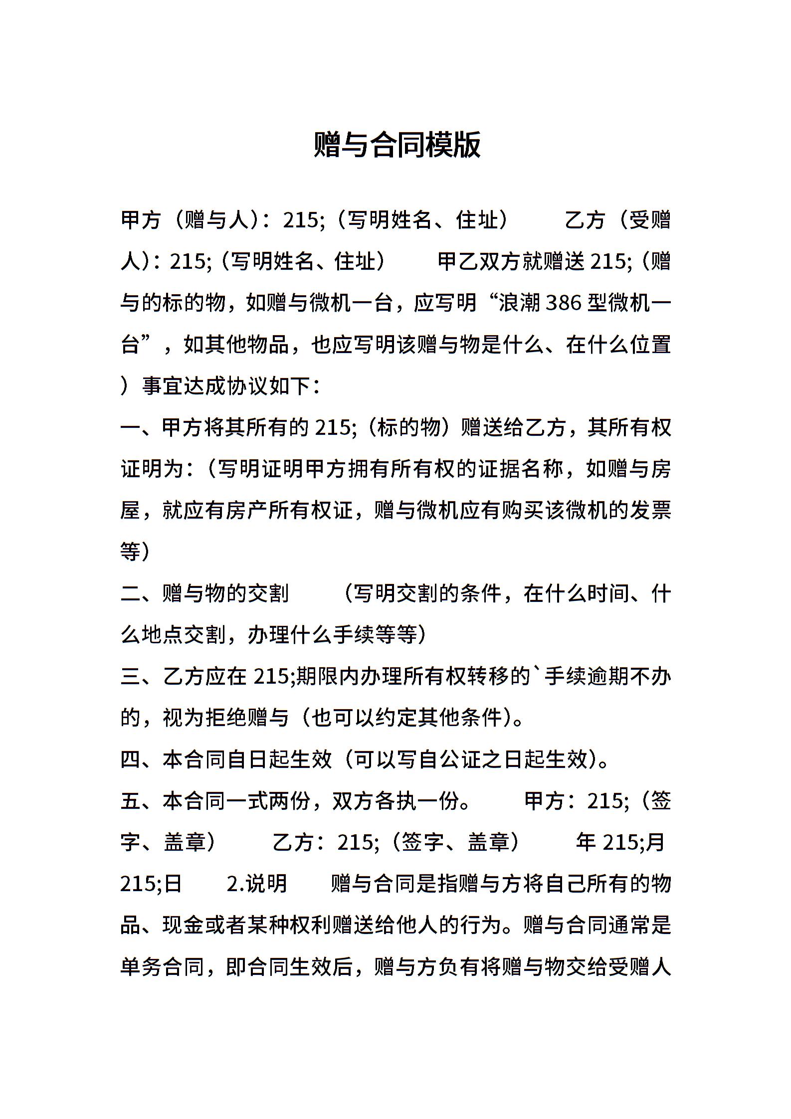 赠与合同模版