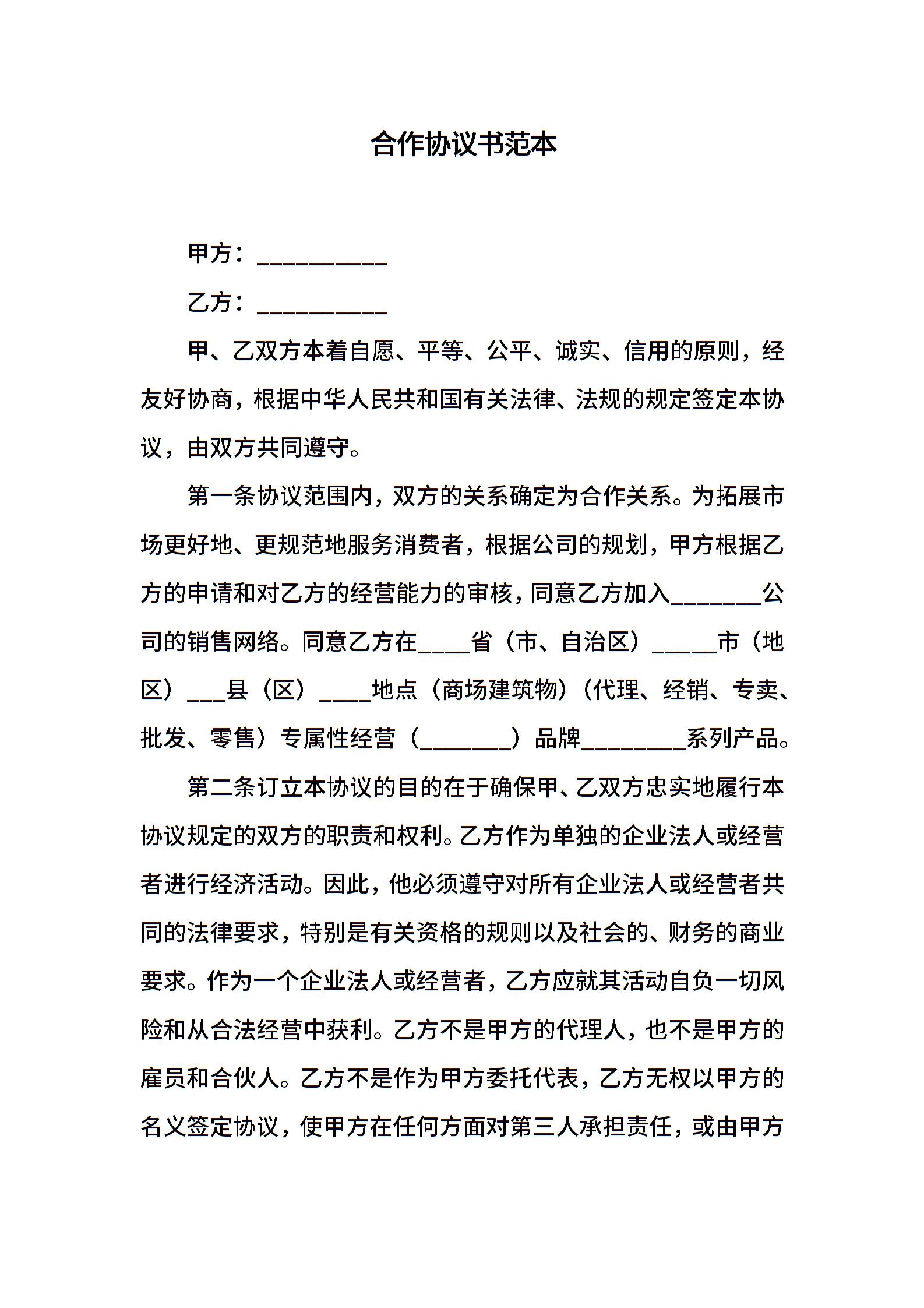 当前位置:量子办公 > 合同模板 > 合作合同 >