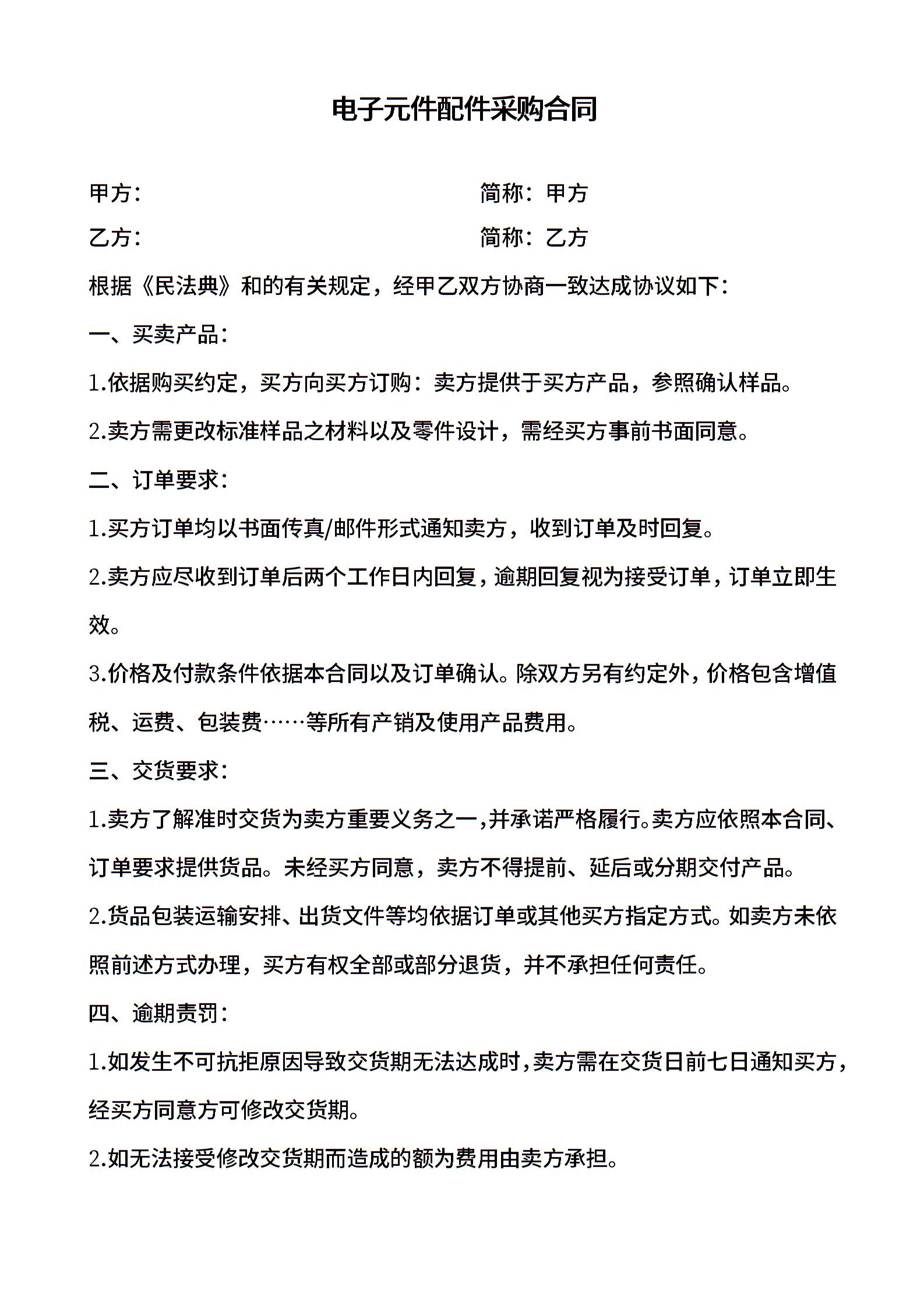 电子元件配件采购合同