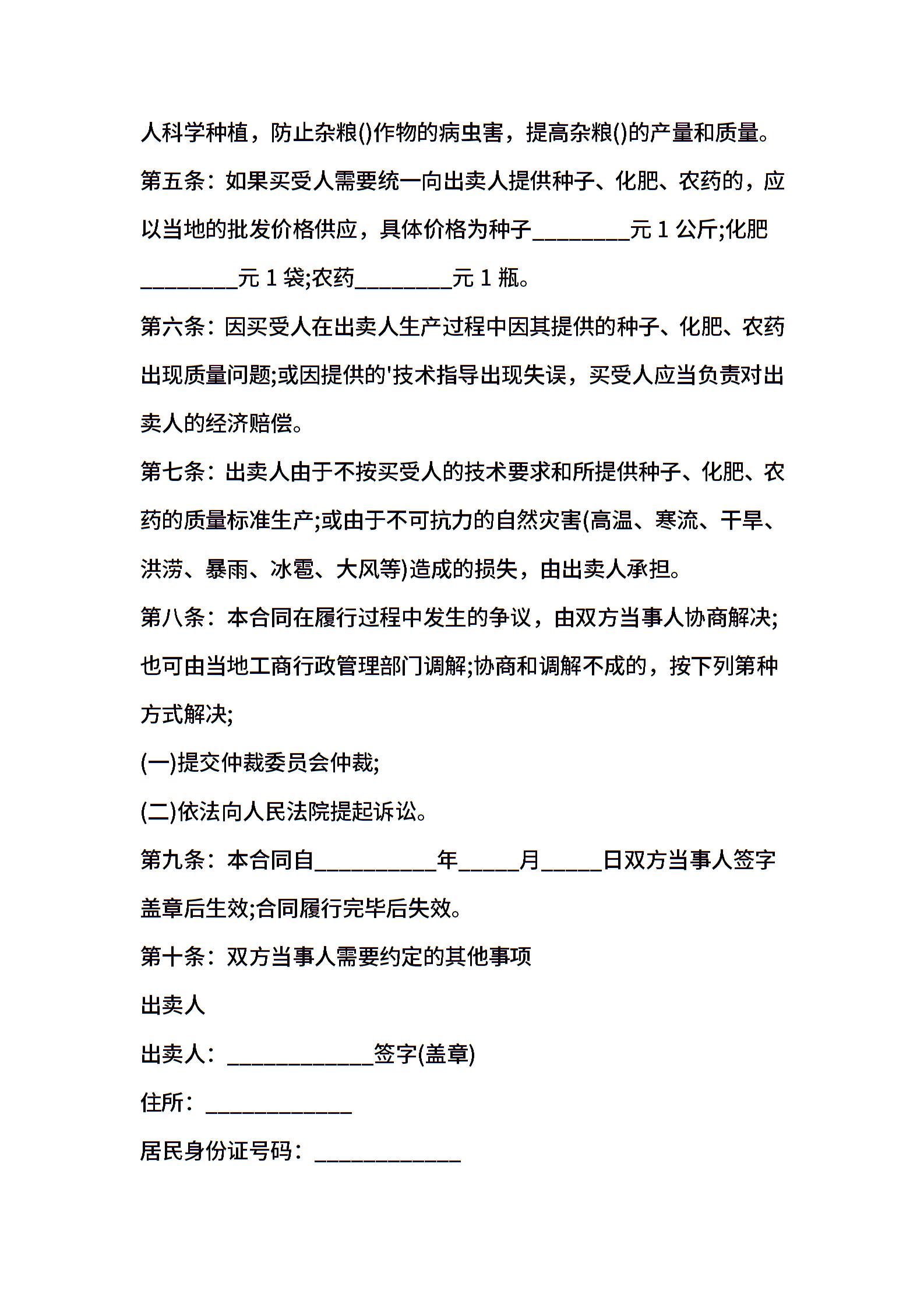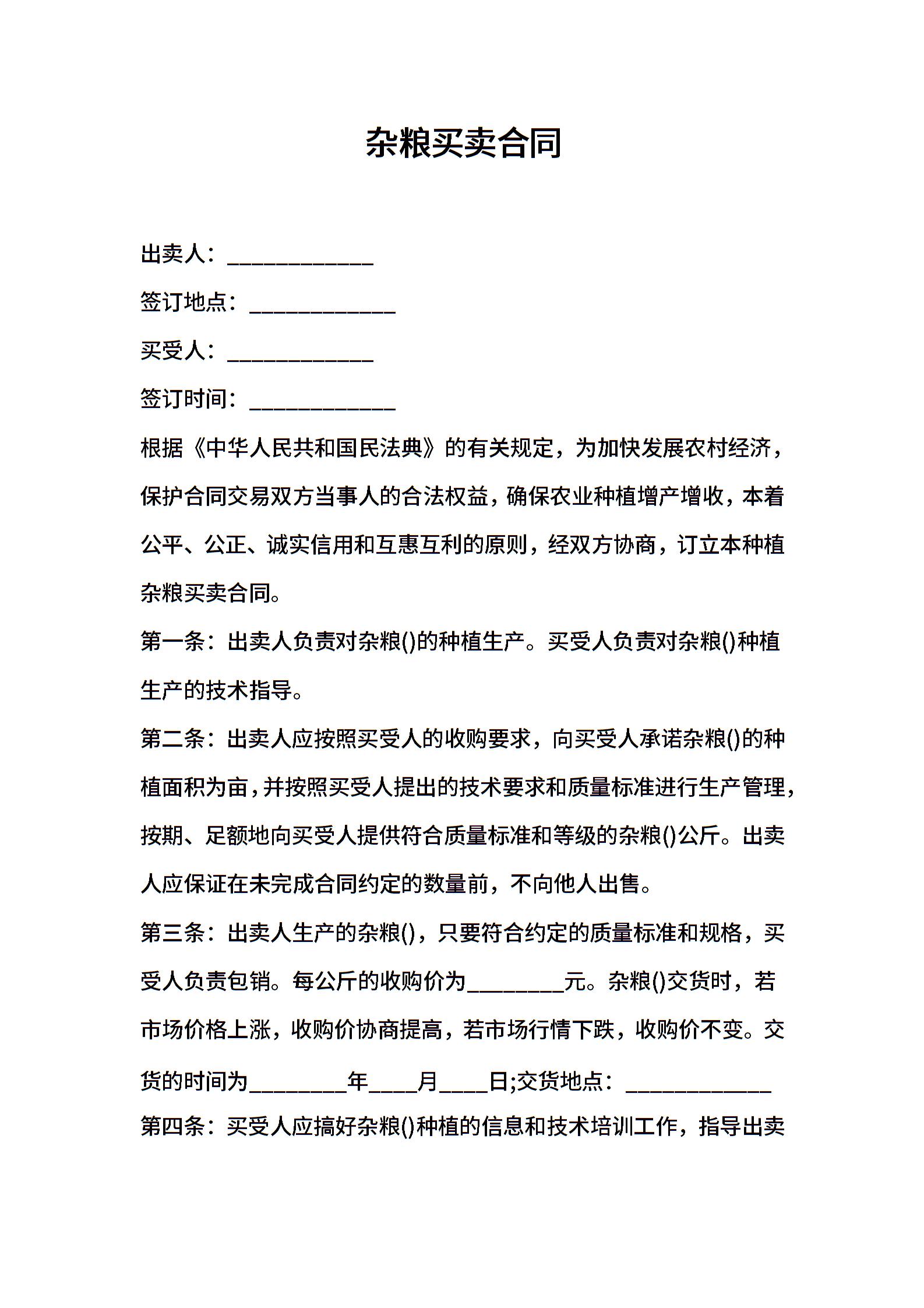 杂粮买卖合同