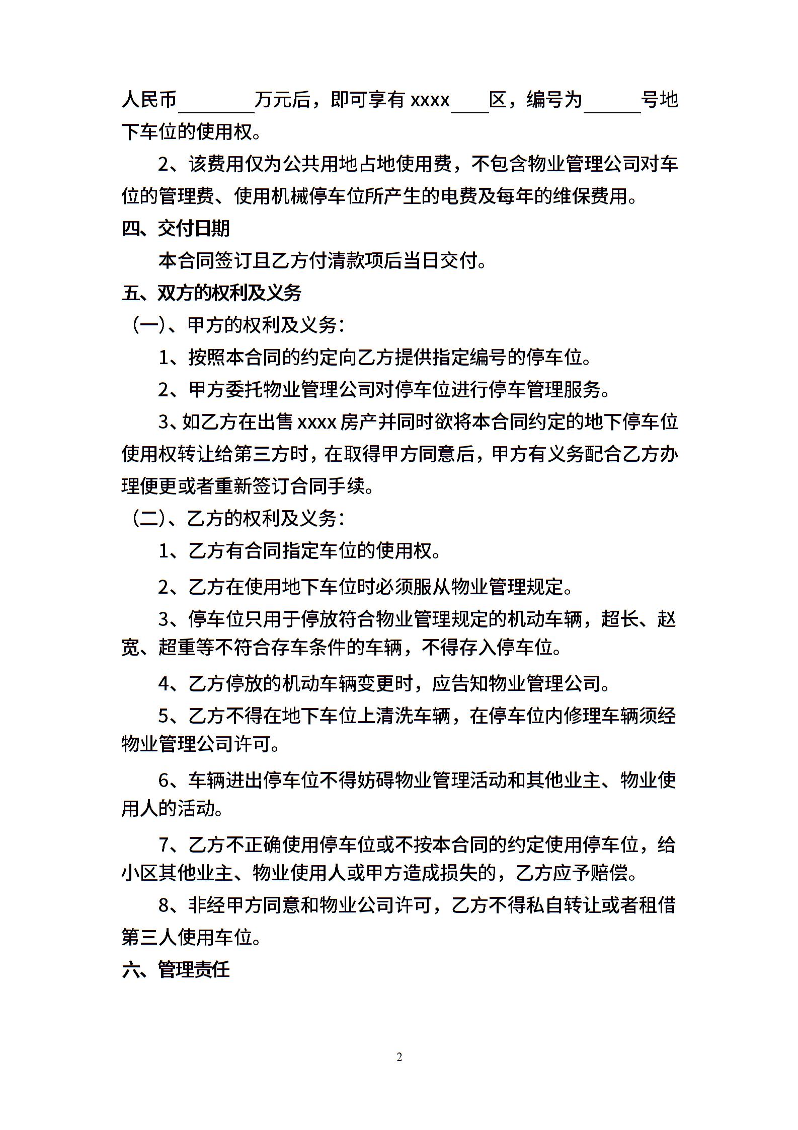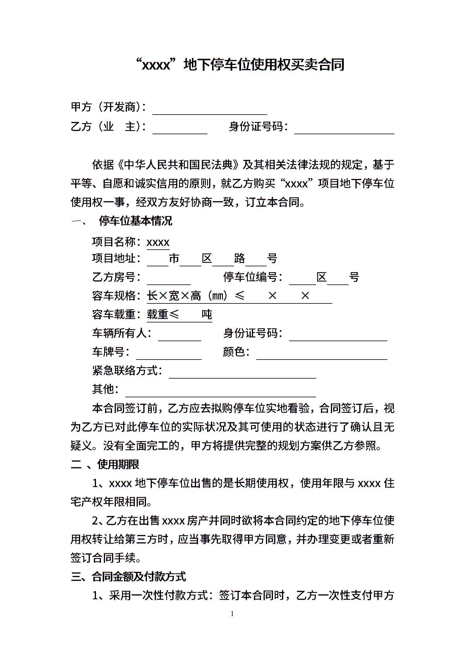 地下停车位使用权买卖合同