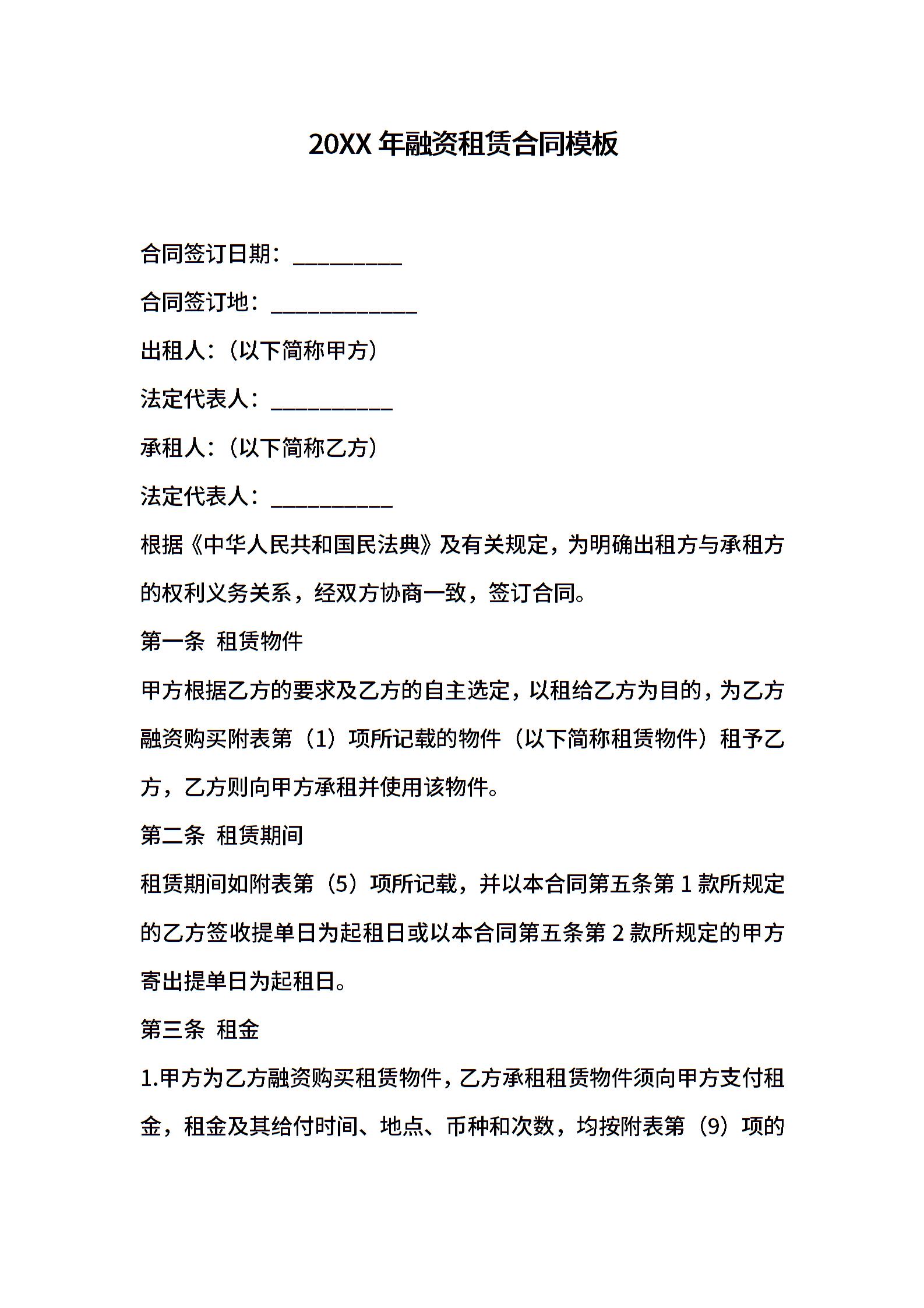 2021年融资租赁合同模板
