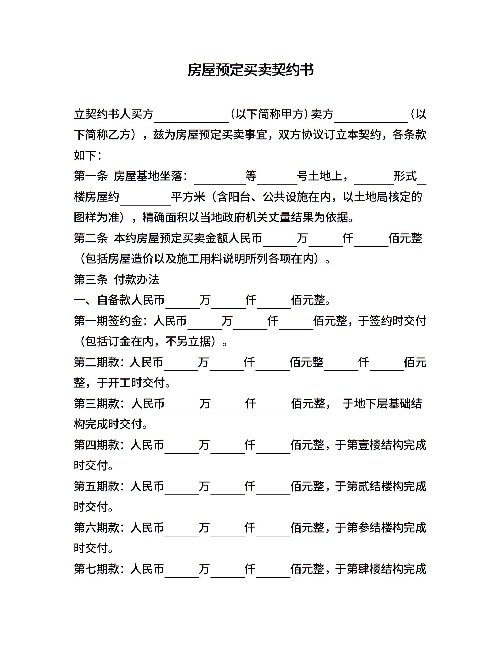 房屋预定买卖契约书