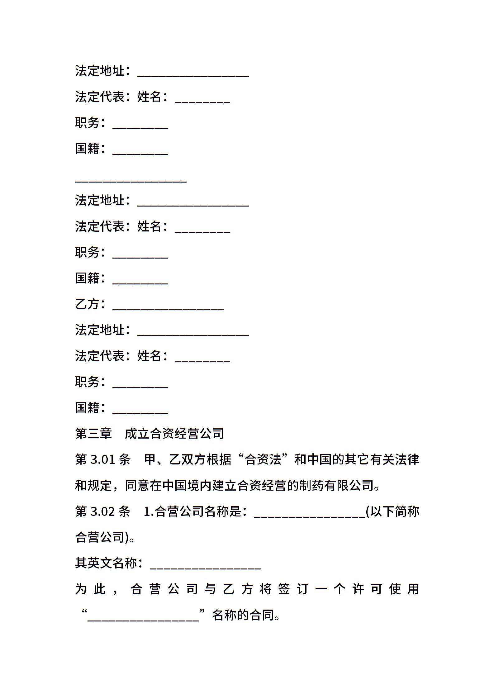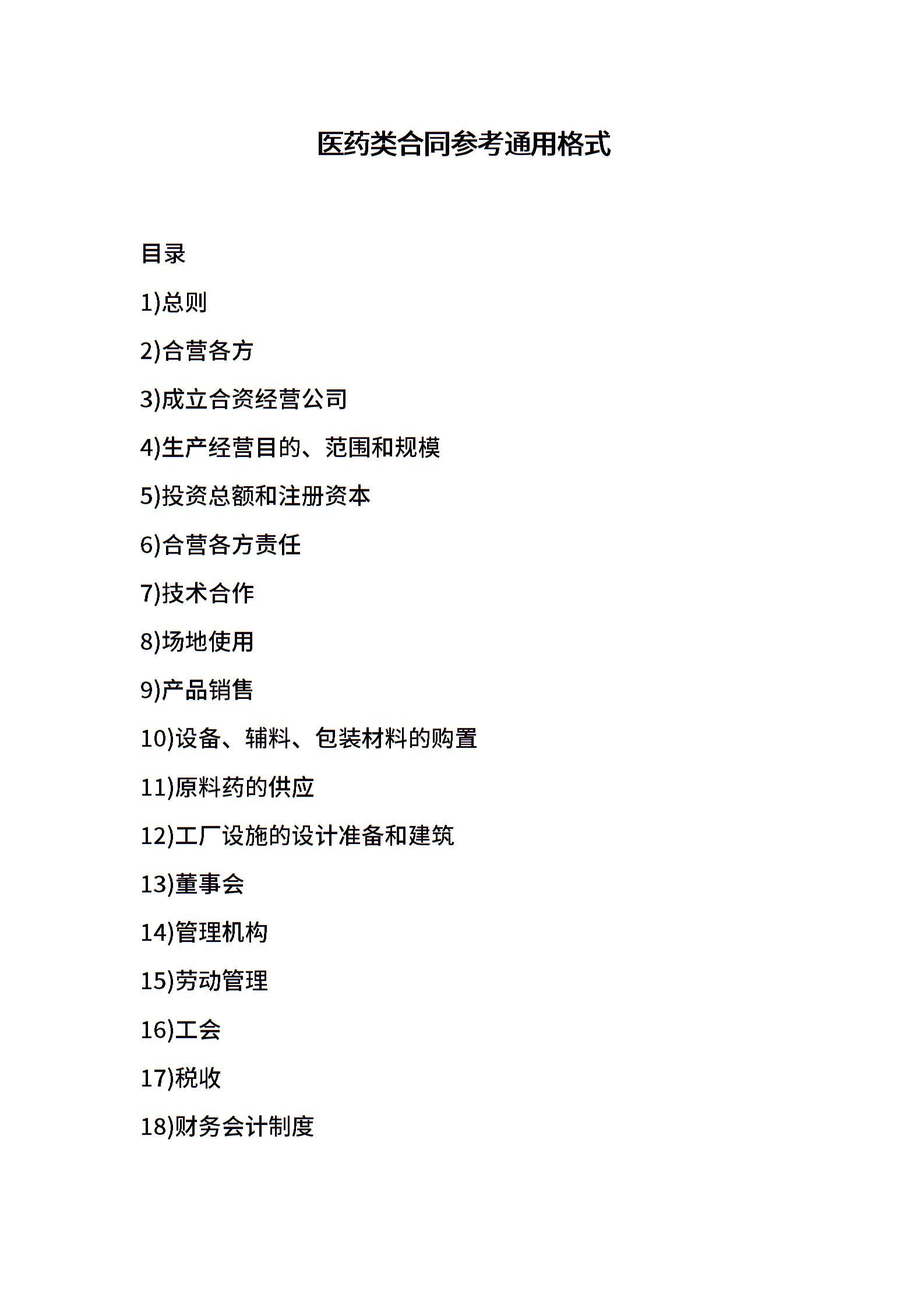 医药类合同参考通用格式