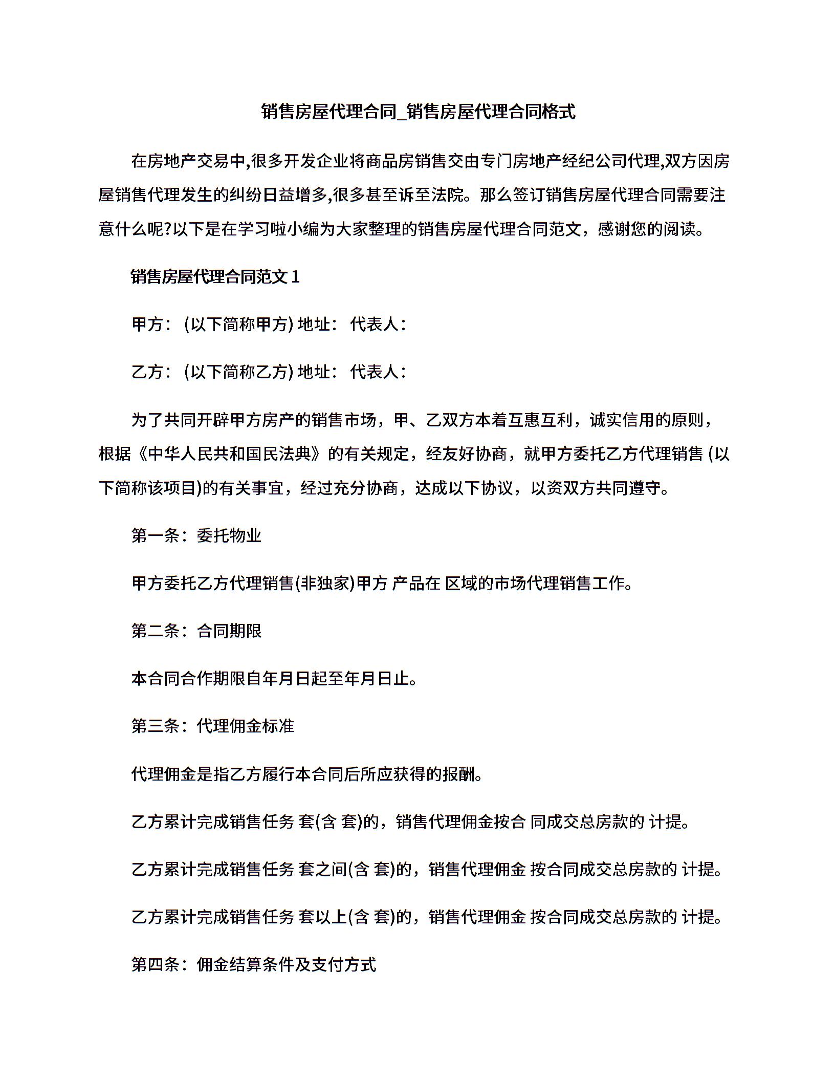销售房屋代理合同_销售房屋代理合同格式.docx