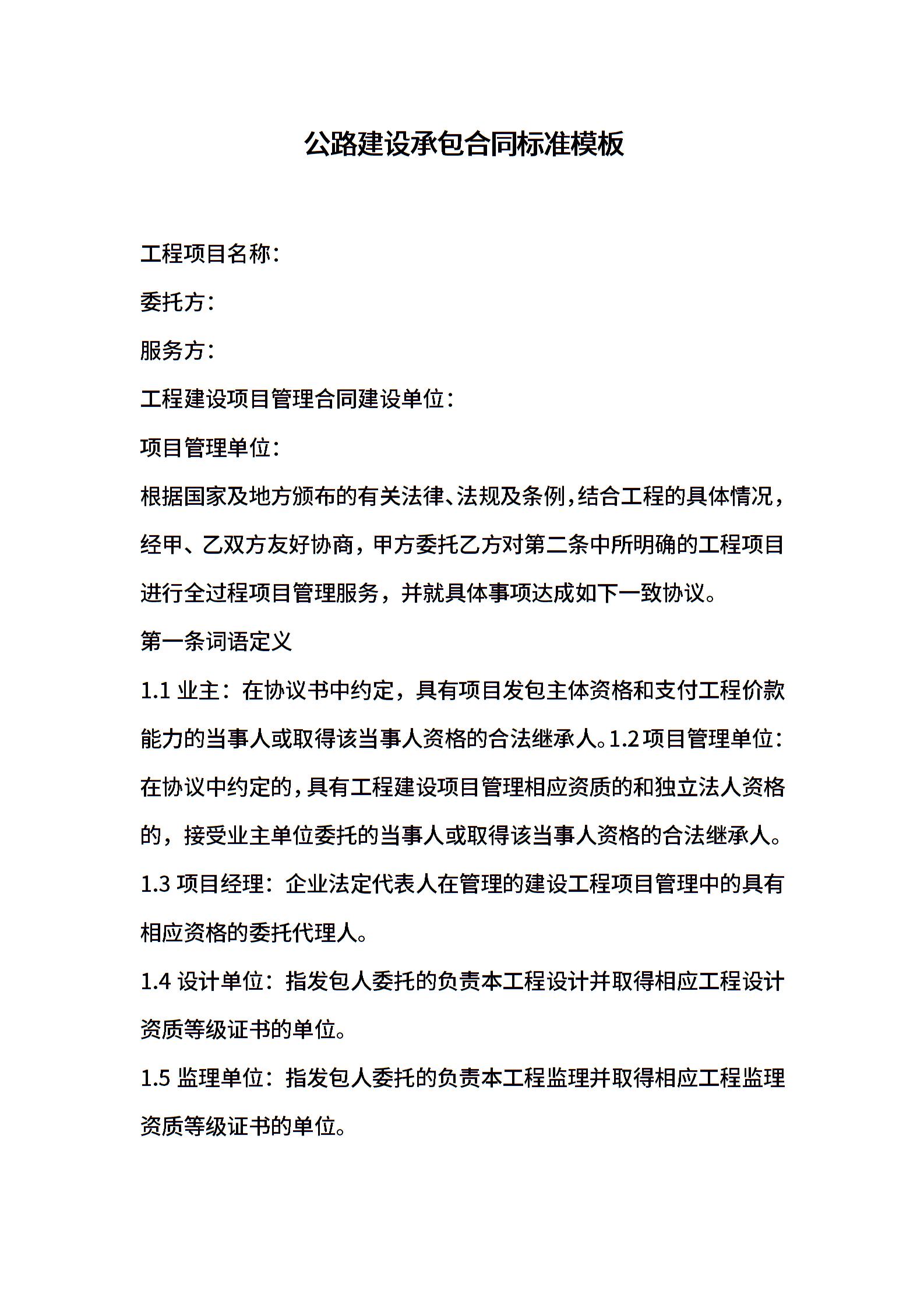 公路建设承包合同标准模板