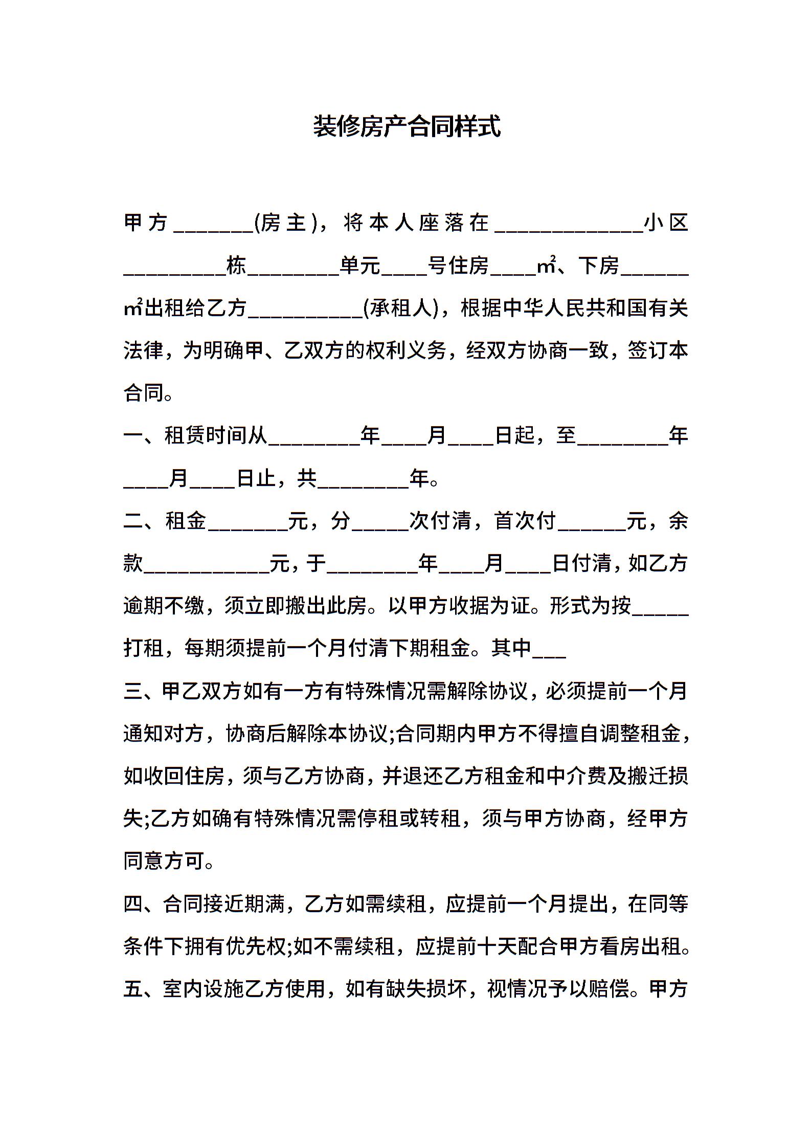 当前位置:量子办公 > 合同模板 > 房屋装修 >