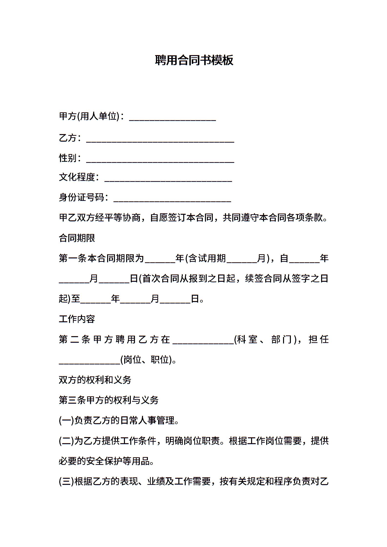 聘用合同书模板