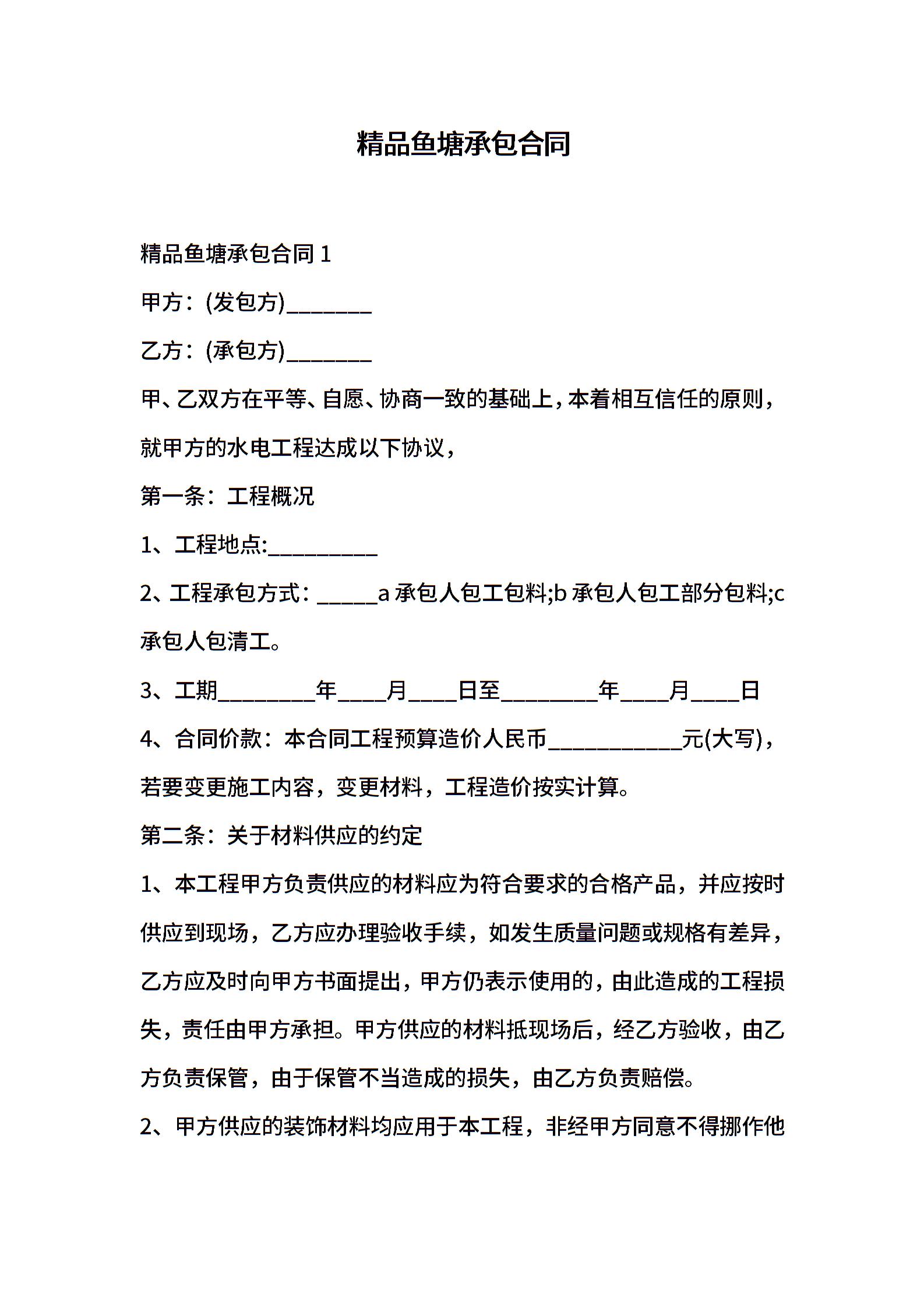 精品鱼塘承包合同