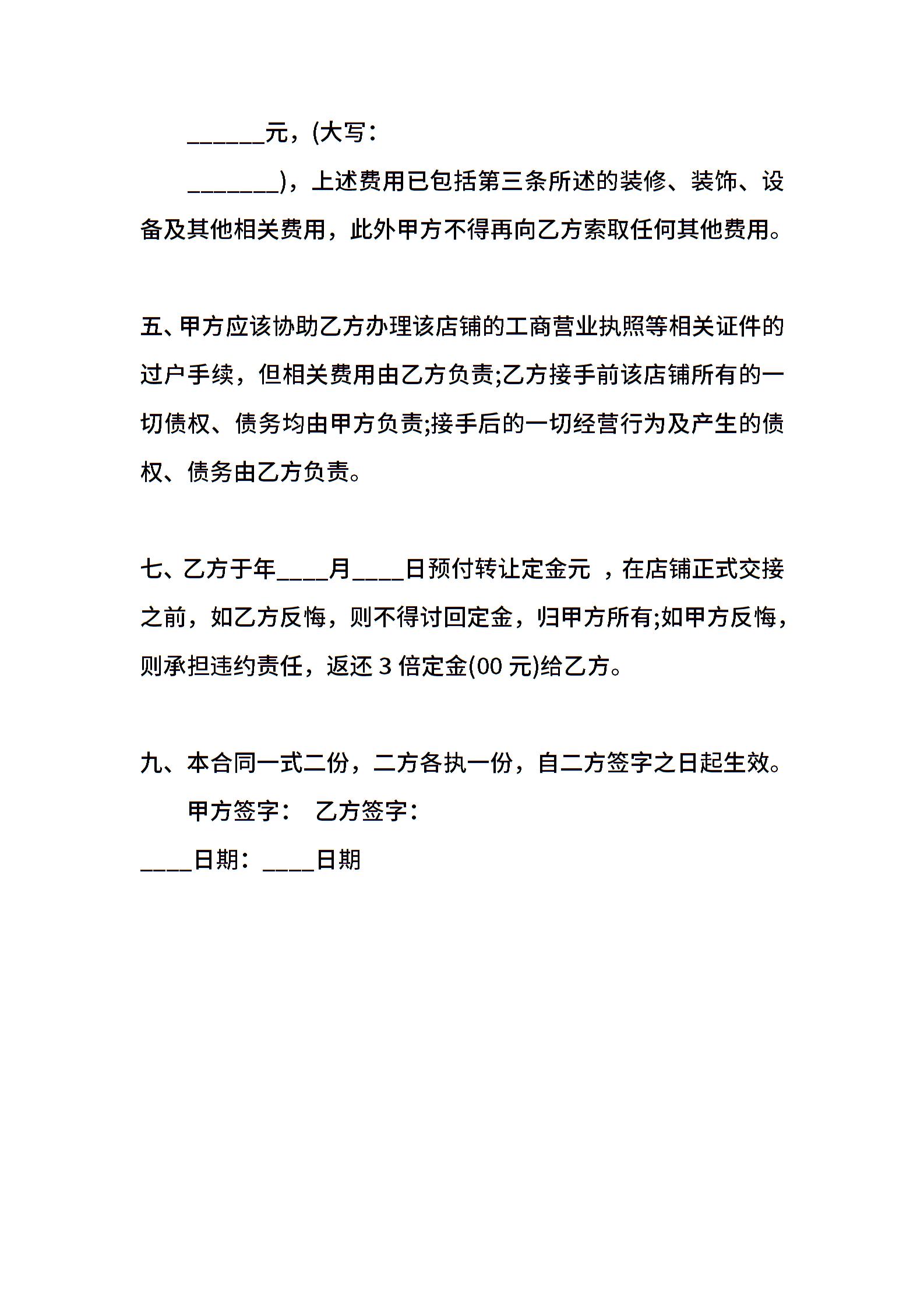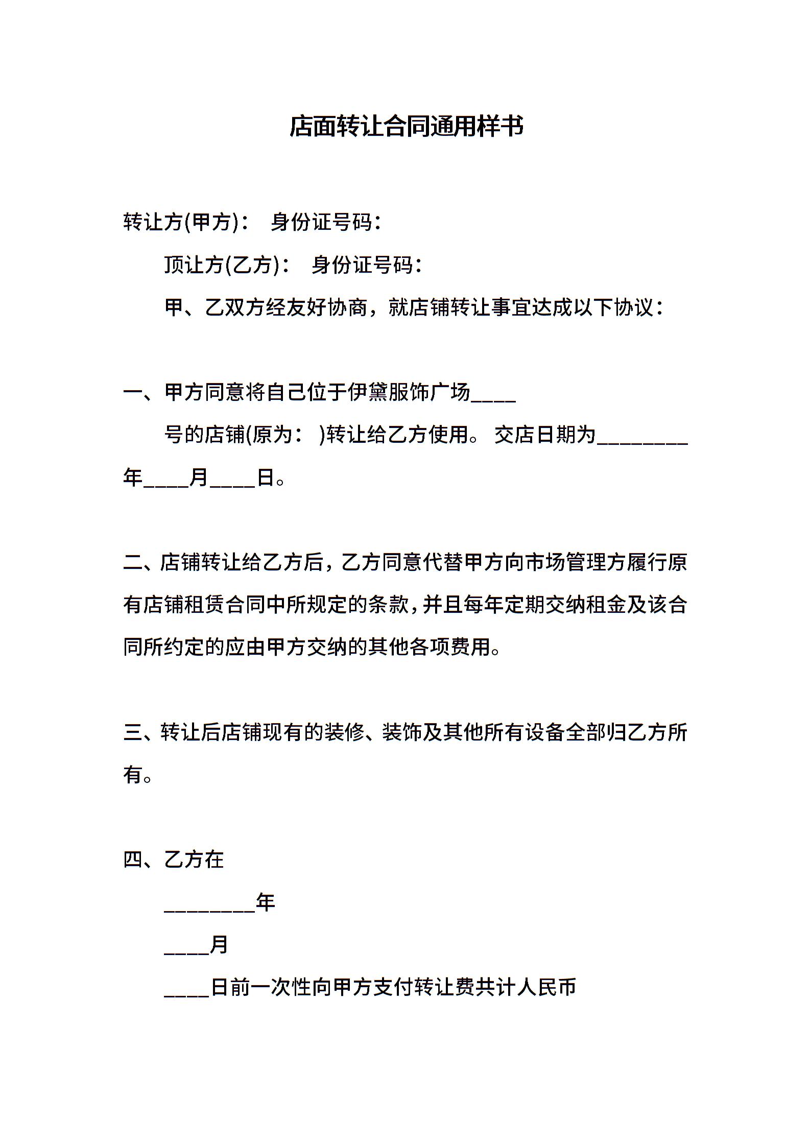 店面转让合同通用样书