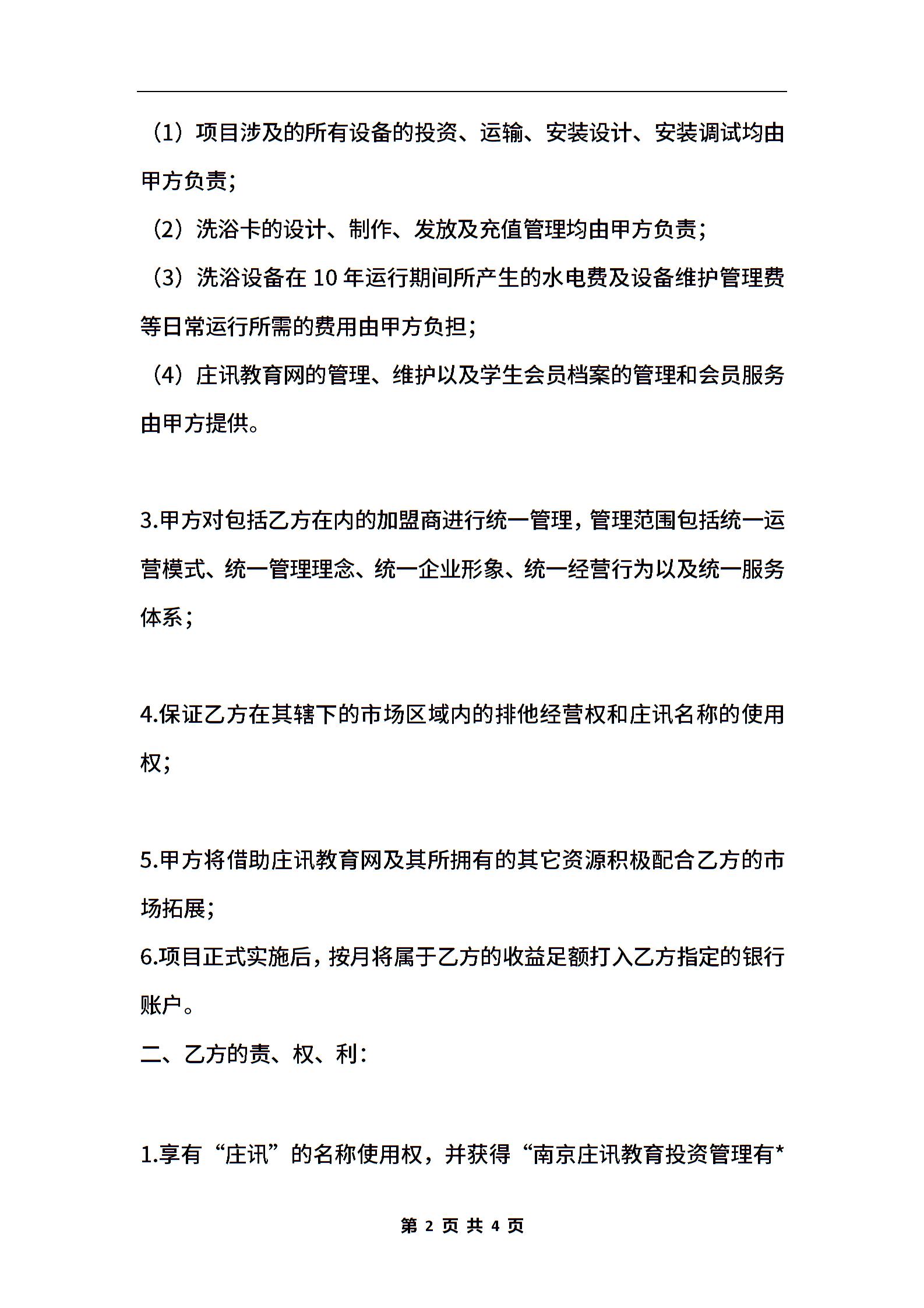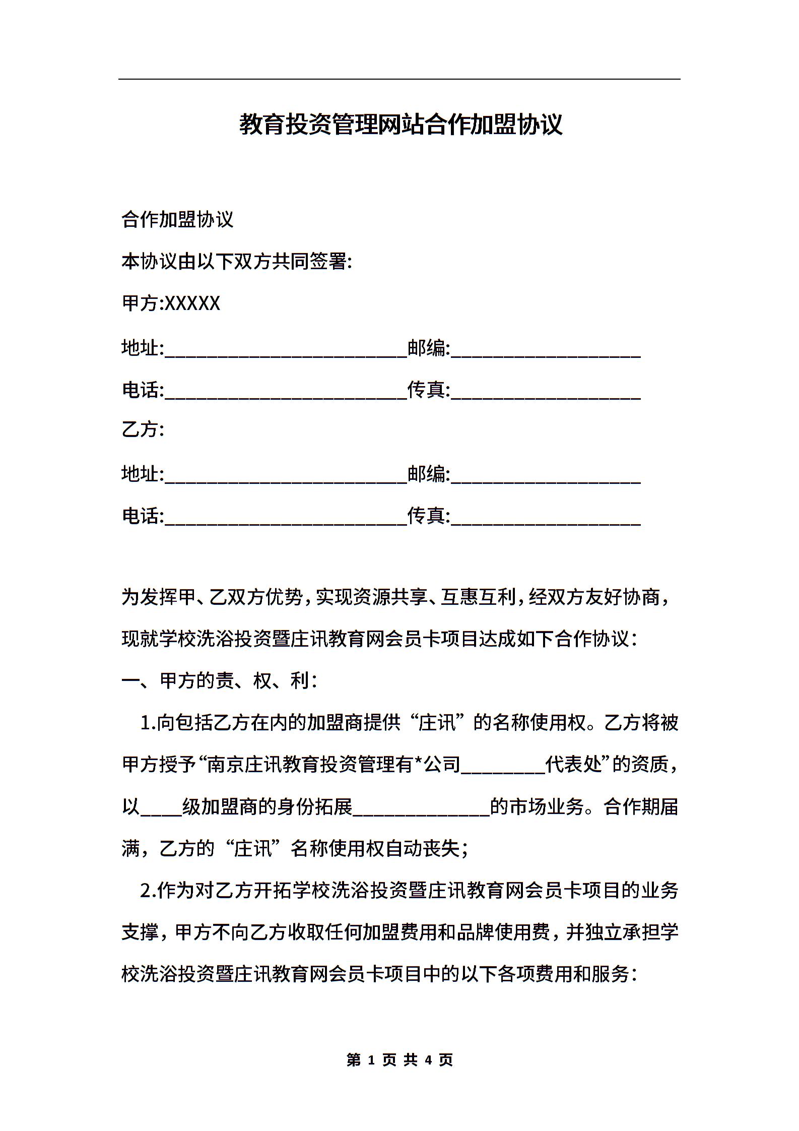 教育投资管理网站合作加盟协议