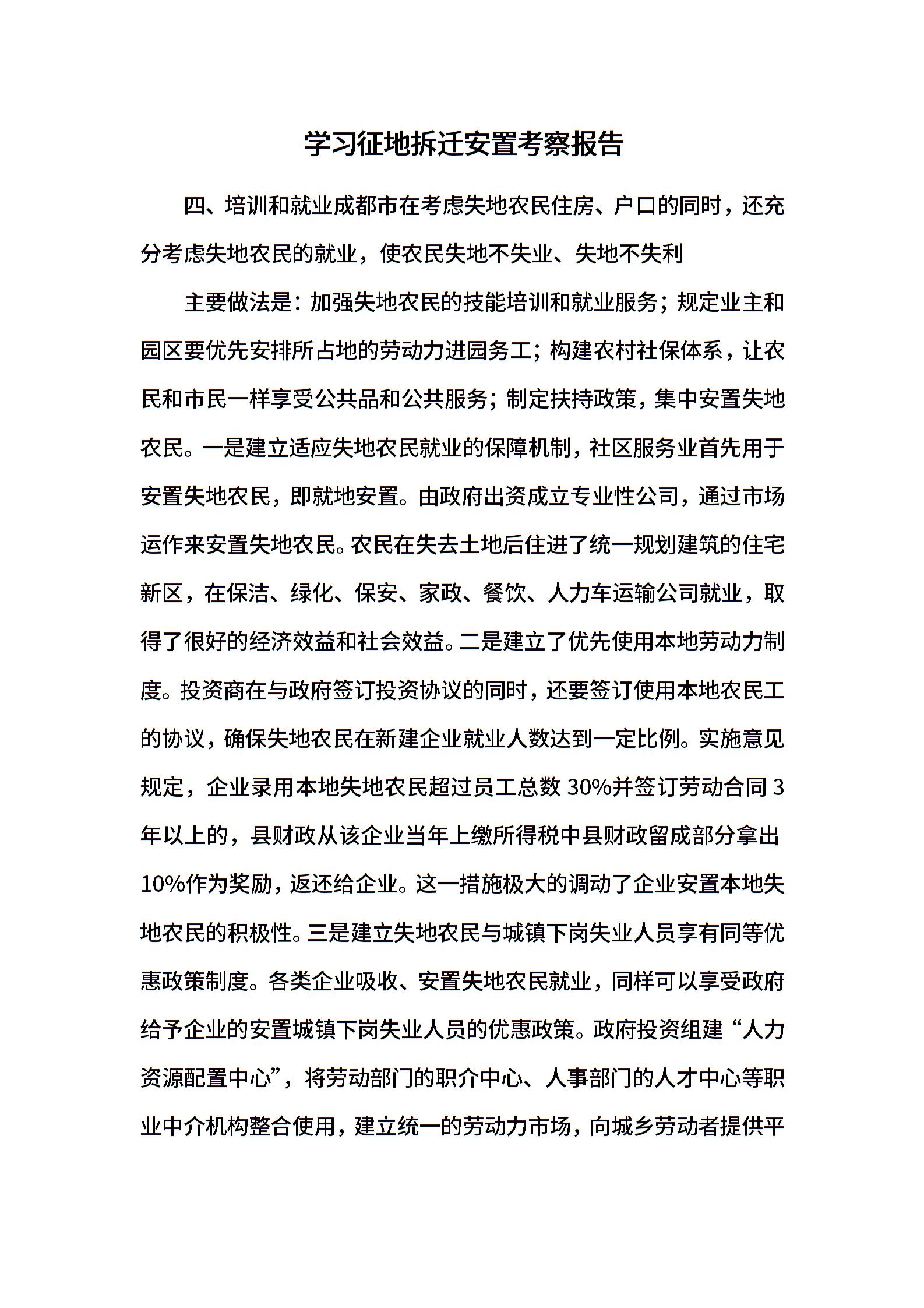 学习征地拆迁安置考察报告