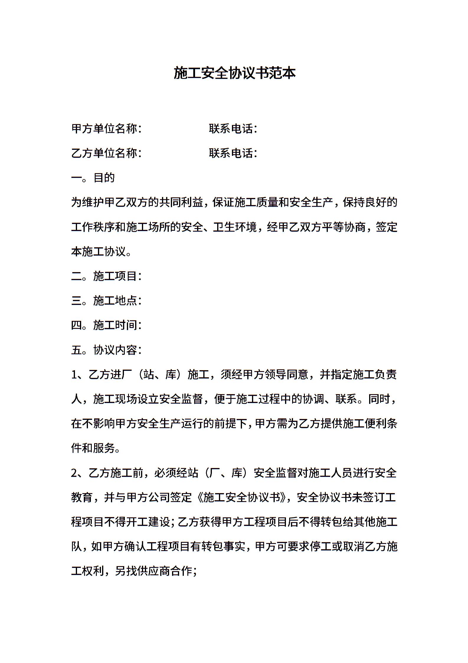 施工安全协议书范本