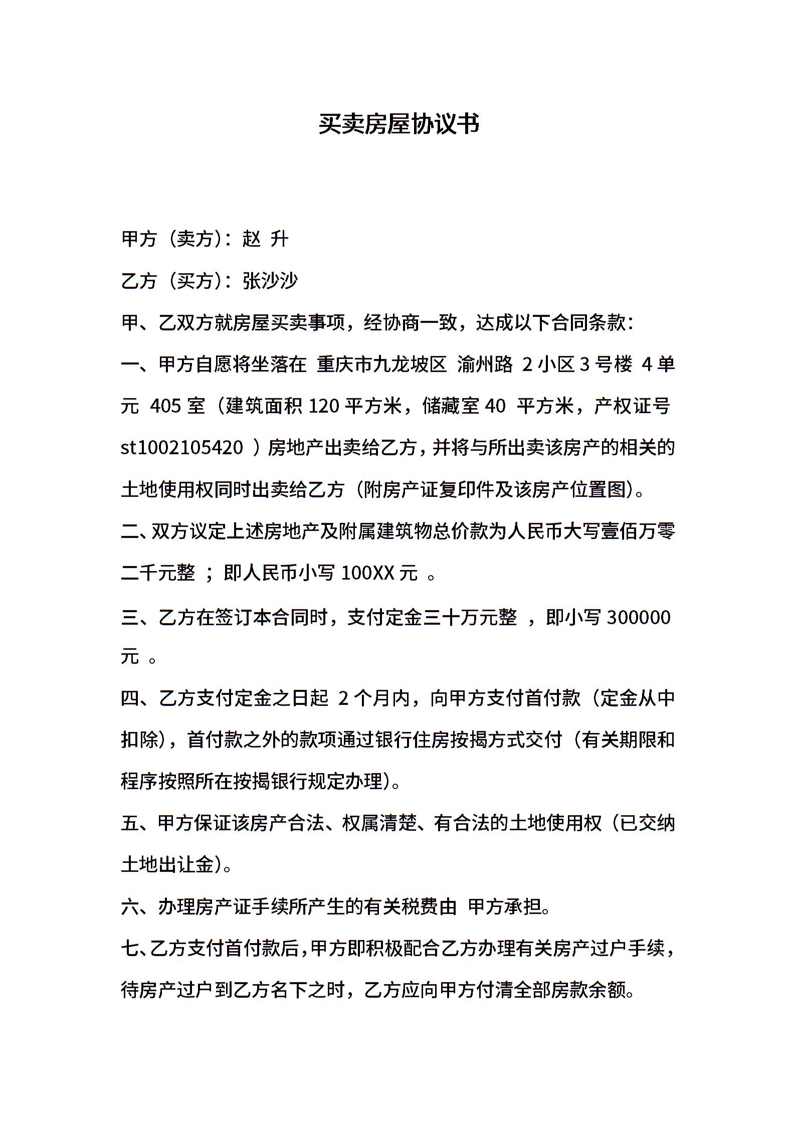 买卖房屋协议书