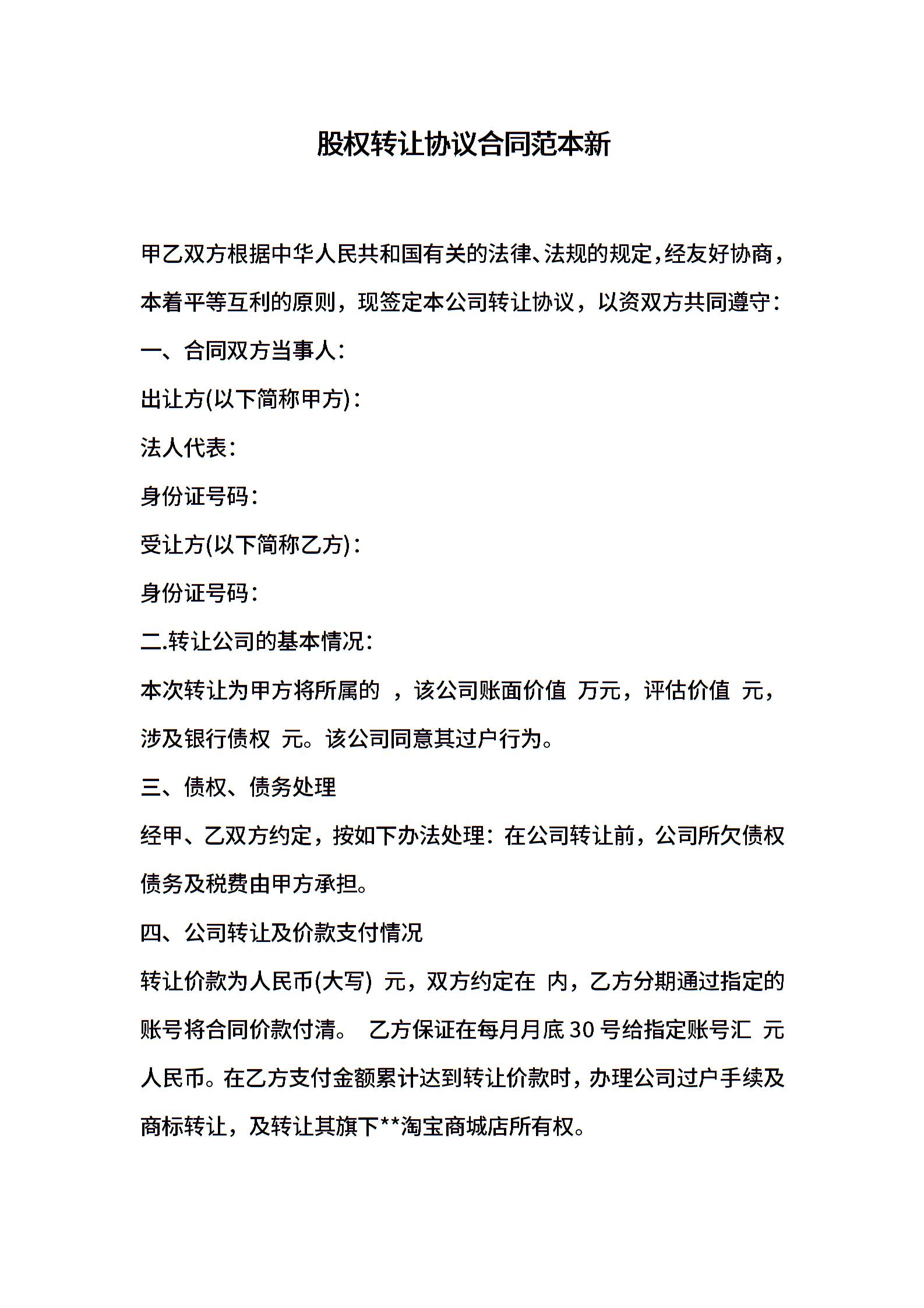股权转让协议合同范本新