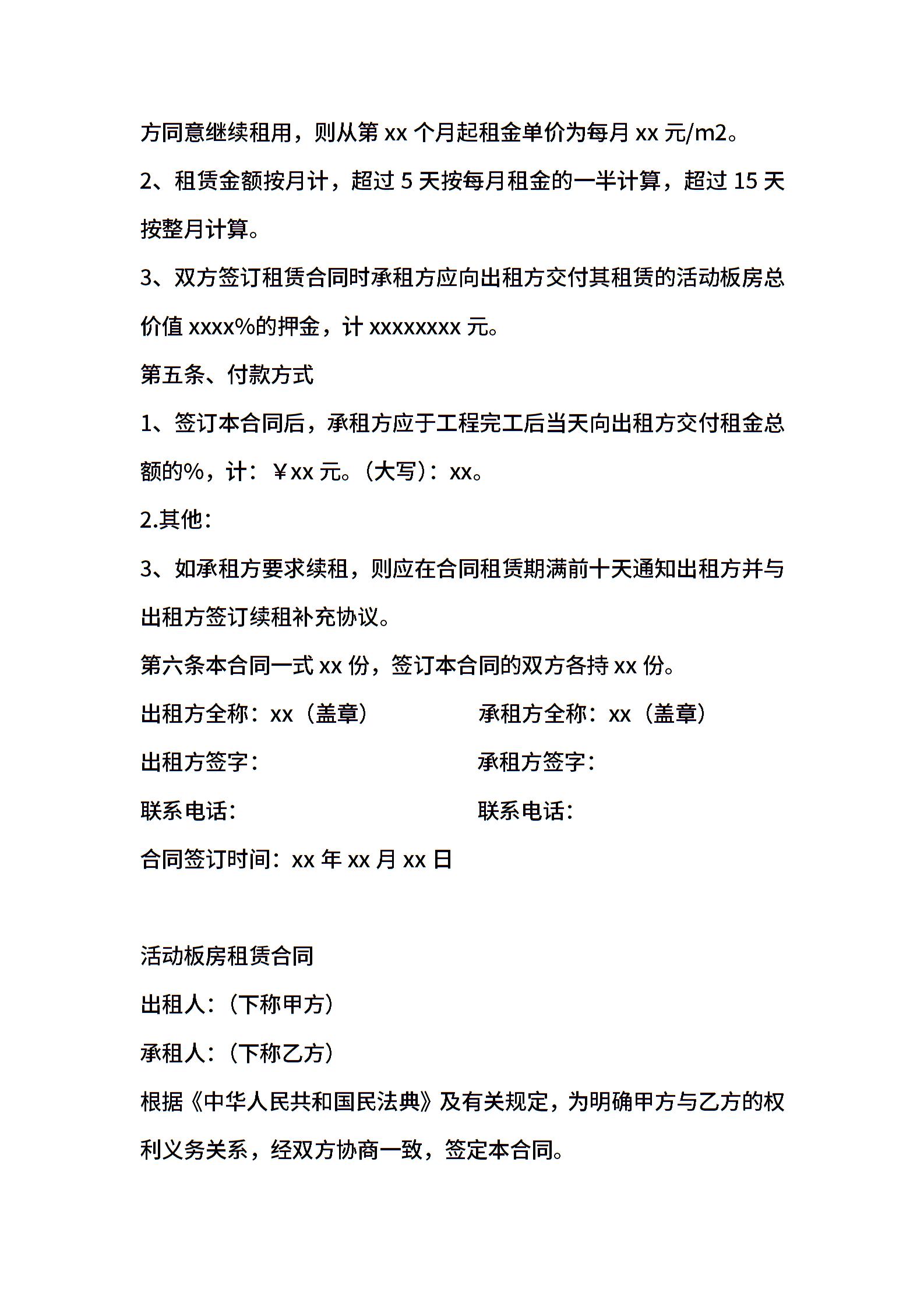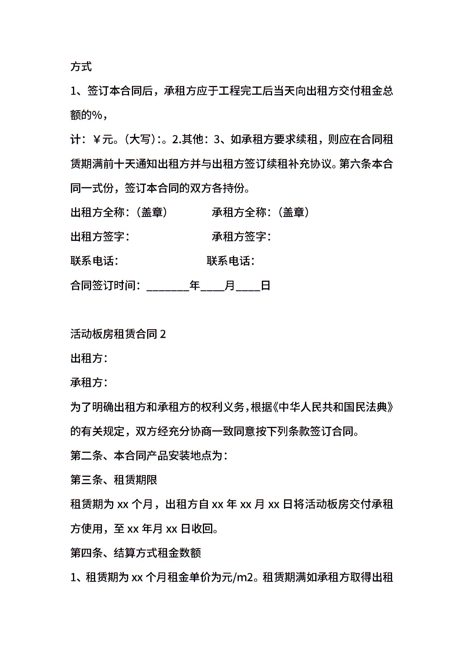 活动板房租赁合同