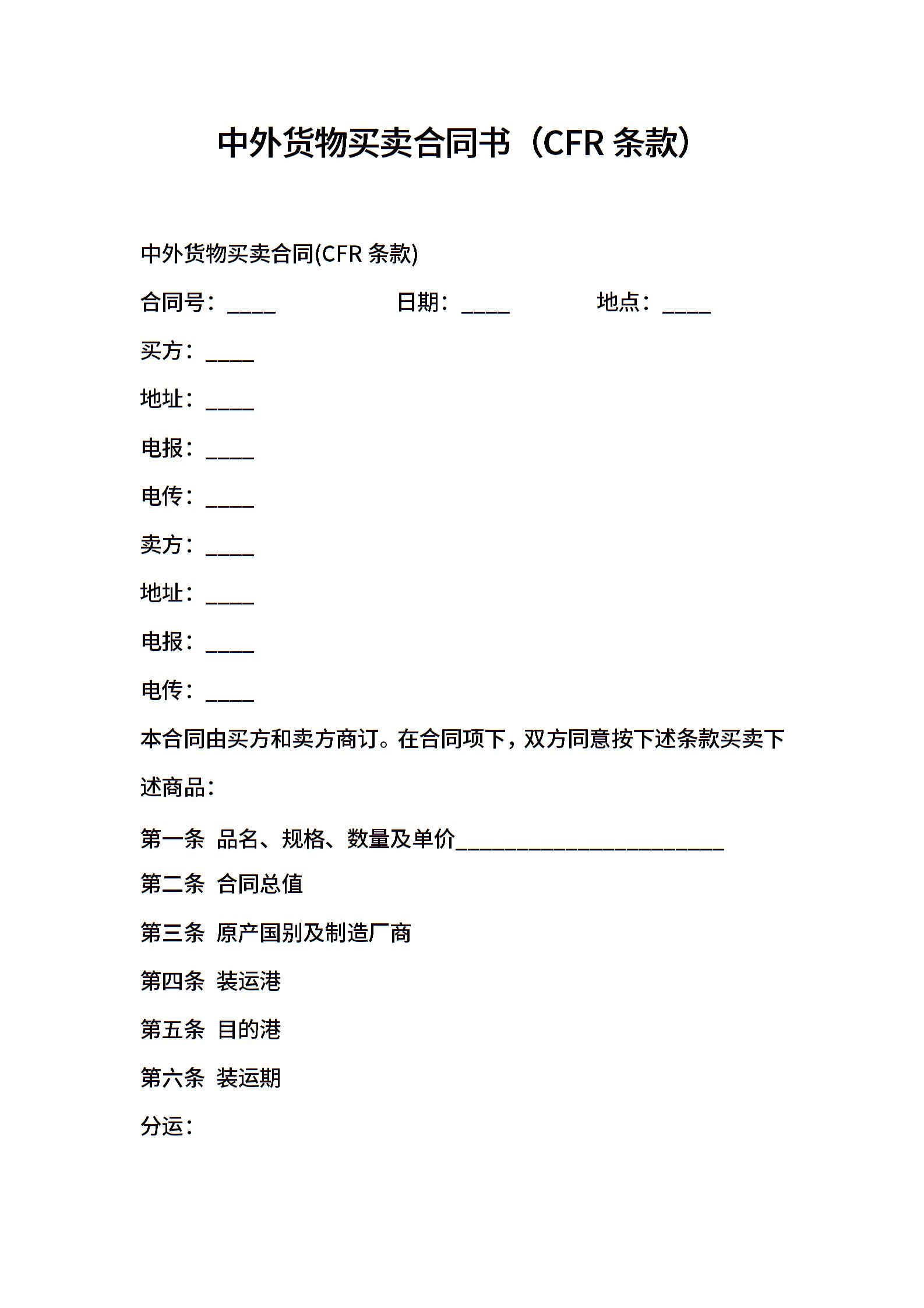 中外货物买卖合同书(CFR条款)