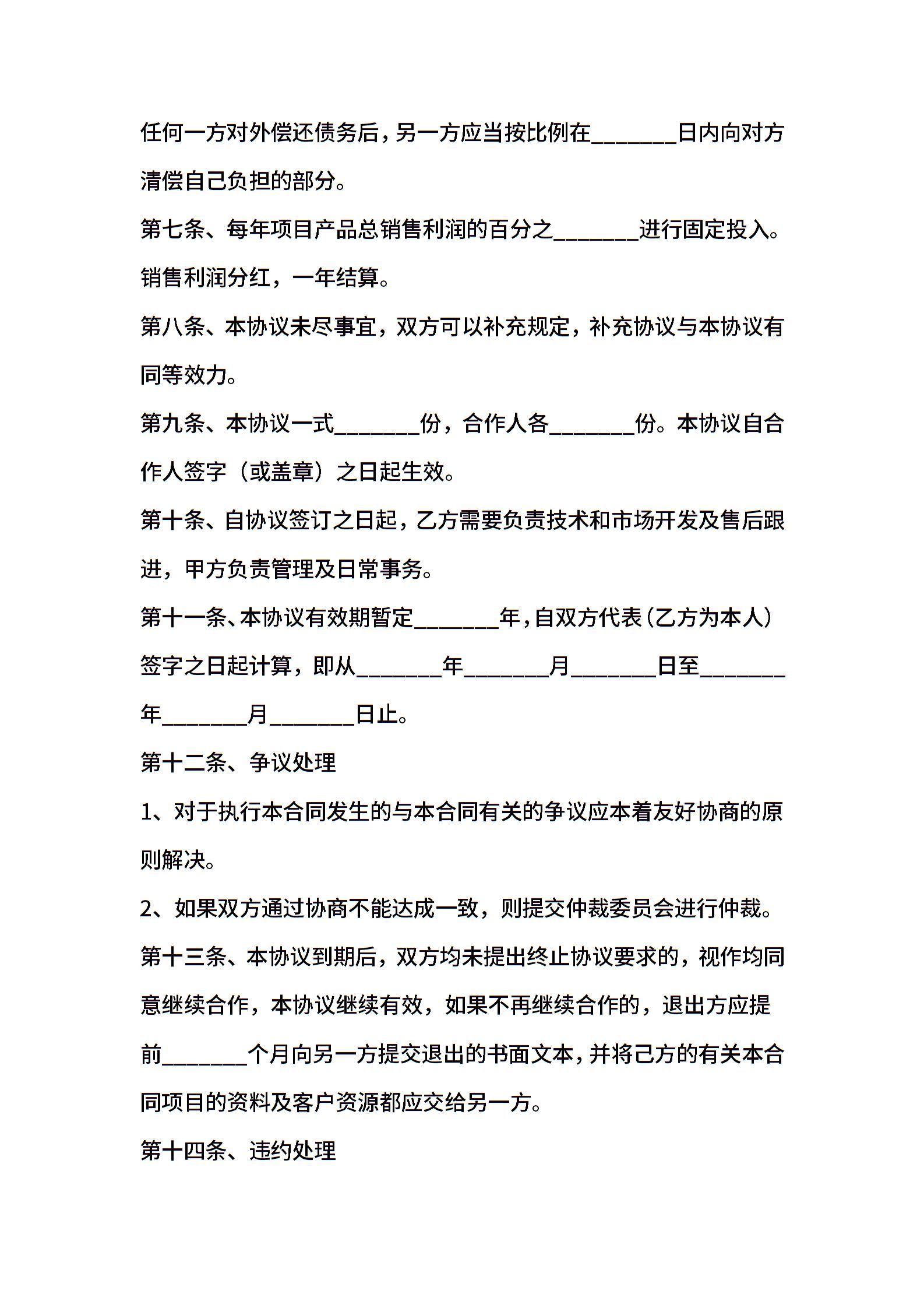 • 分类 合作合同